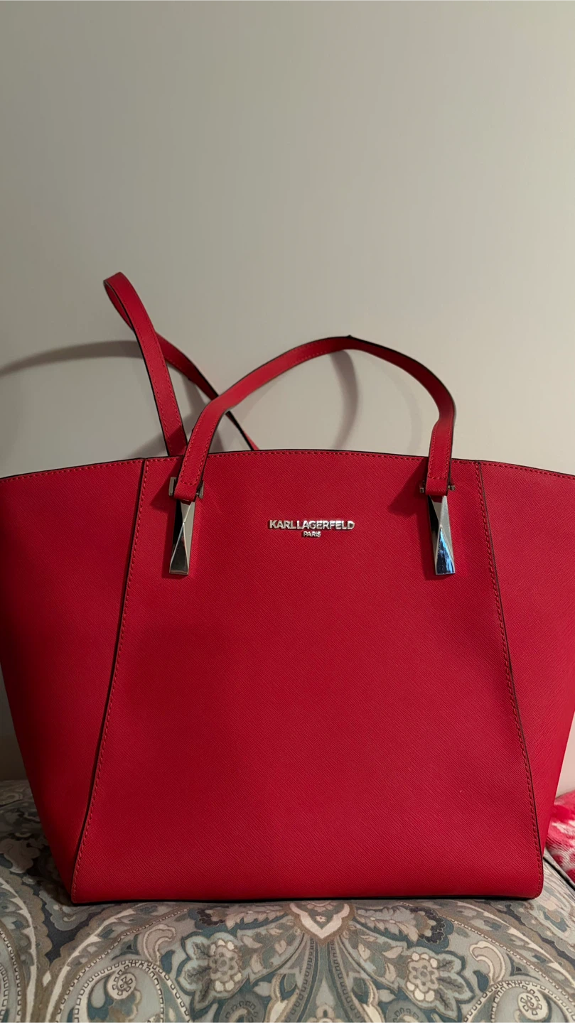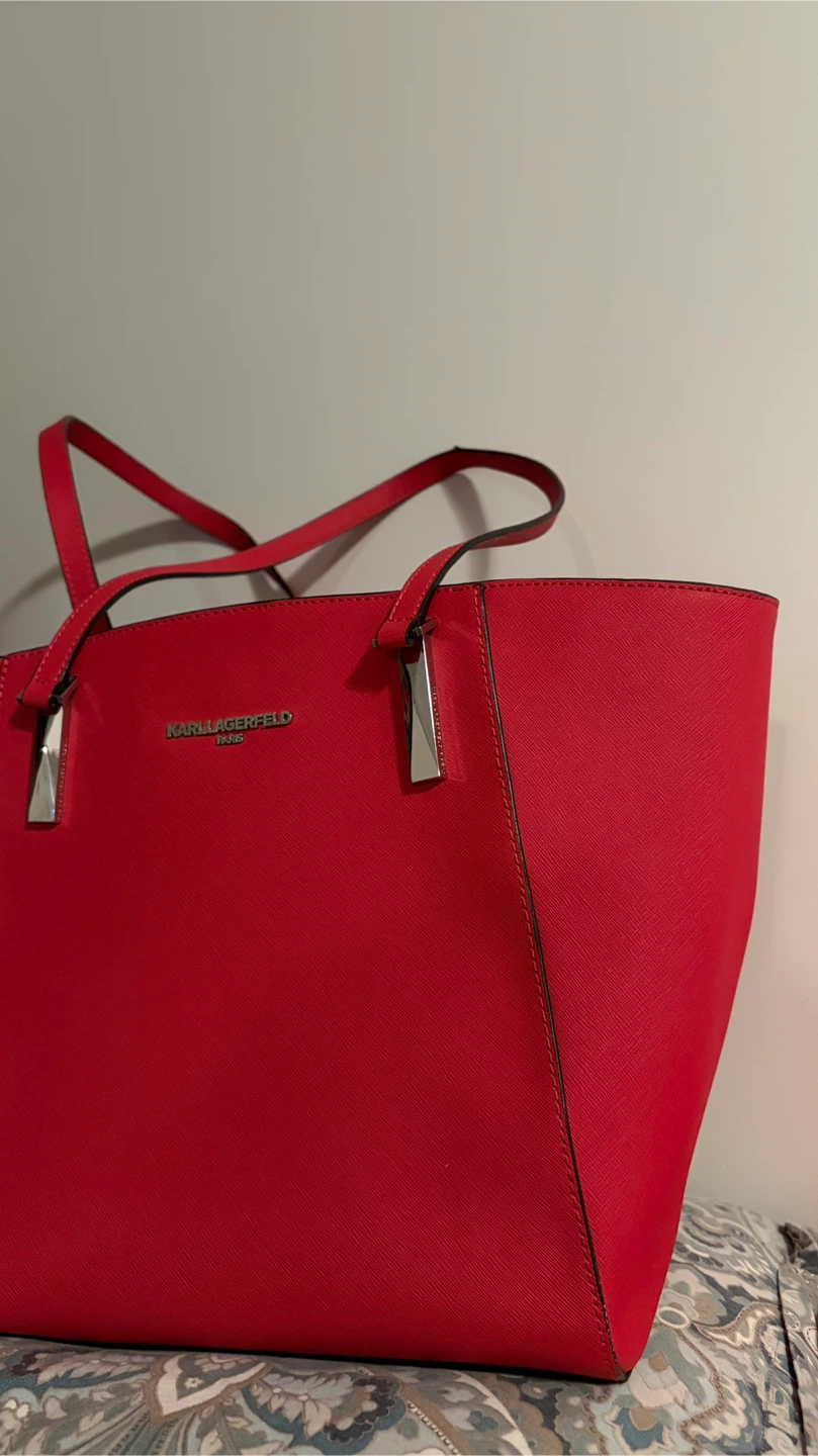Selling a stylish Karl Lagerfeld Paris tote bag! It's a vibrant red colour and in great condition. Perfect for carrying all your essentials in style.