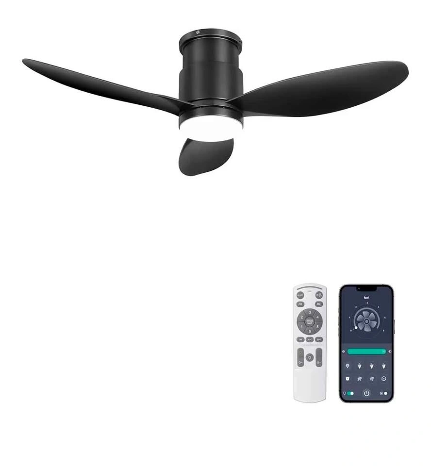 Brand new 42 inch low profile ceiling fan with integrated LED light. Remote and app control for easy operation. Three light colors with adjustable brightness. Silent DC motor ideal for bedroom or living room.