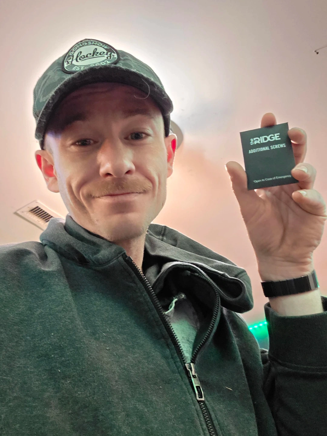 Additional screws for The Ridge wallet. Comes with a small envelope. Keep these handy in case of emergencies! I left my backbapack on bus one ice y noight
