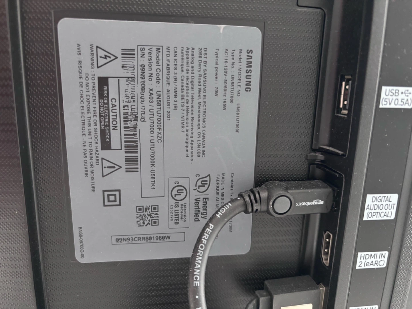 Samsung 58” Smart 4K UHD TU7000