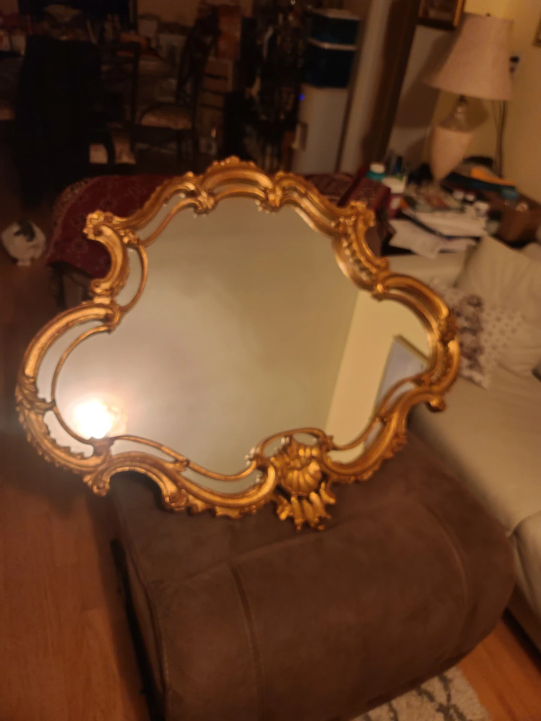 1 / 21 / 2Buy & SellGold Ornate MirrorGold Ornate Mirror$650Selling a beautiful gold ornate mirror! It would look great in any room of the houseConditionLike newDimensions44 x 43 inches WHERE TO MEETCheck LocationView MapSELLER322298Ossining323 reviews0 chats·0 favorites·30 viewsSEND CHAT TO SELLERHi 322298! I’m interested in your listing.Hi 322298! I’m interested in your listing.Get the Karrot app to chatSign In to chat