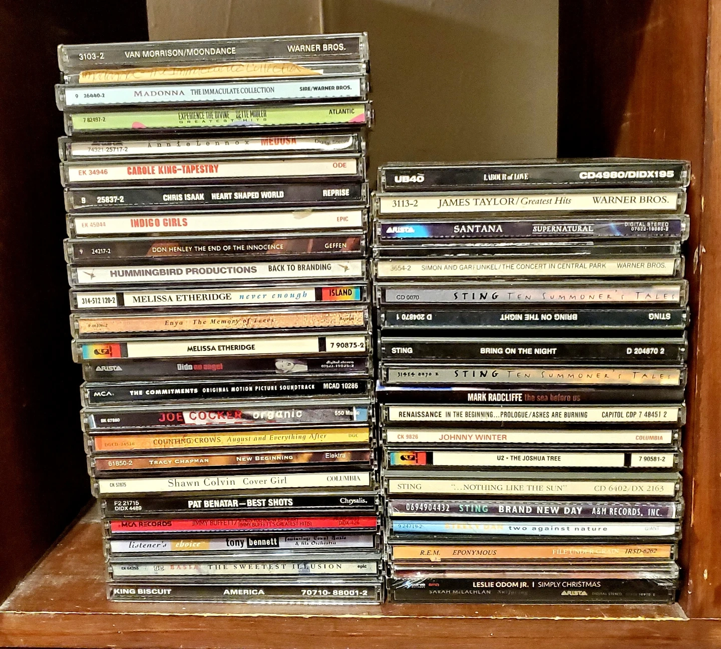 Last chance to buy! $3 each. Here's what's still available from my big collection of classic rock music CDs. Artists include Santana, Melissa Etheridge, Joe Cocker, Madonna, James Taylor, Santana, Sting, and more.. Includes original cases. Excellent condition.