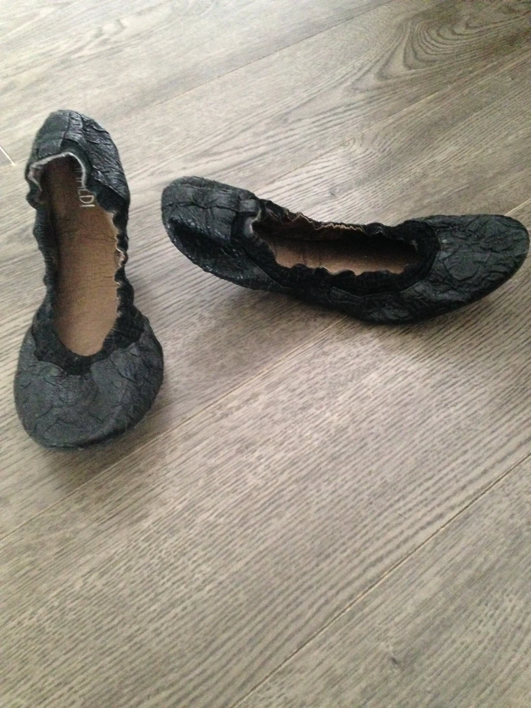 Black ballet flats with a textured finish. Elasticized edges for a comfy fit. Lightweight, comfortable, and perfect for everyday wear.