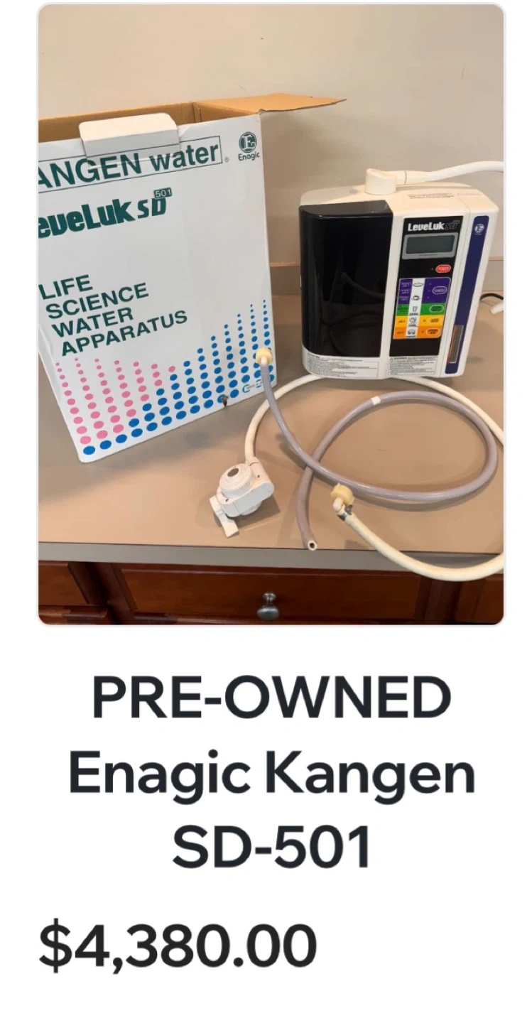 This is a pre-owned Enagic Kangen Water SD-501. It's a life science water apparatus made in Japan. It's been tested and certified by WQA according to NSF/ANSI 42 and CSA B483.1 standards.