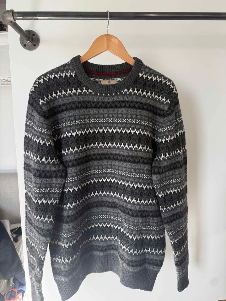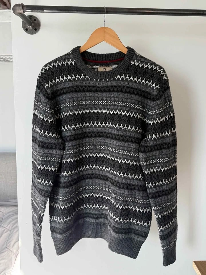 Classic Nordic-style crewneck in charcoal tones with white pattern detail. Super cozy and in great condition. Perfect for fall/winter layering. Size XL (fits true to size).