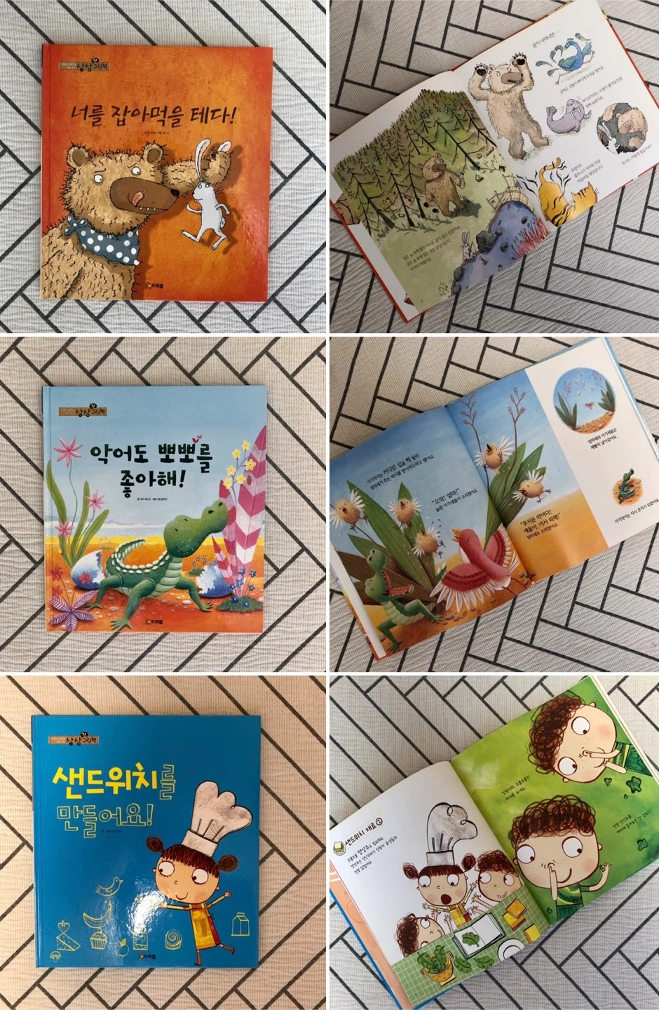This set includes five engaging Korean children's books with colorful illustrations. Titles include: 'I Like the Crocodile', 'Let's Make Sandwiches!', 'I'll Eat You Up!', 'Where Did the Moon Go?', (프뢰벨 상상그림책)