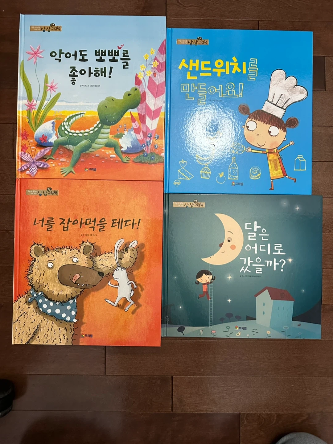 This set includes five engaging Korean children's books with colorful illustrations. Titles include: 'I Like the Crocodile', 'Let's Make Sandwiches!', 'I'll Eat You Up!', 'Where Did the Moon Go?', (프뢰벨 상상그림책)