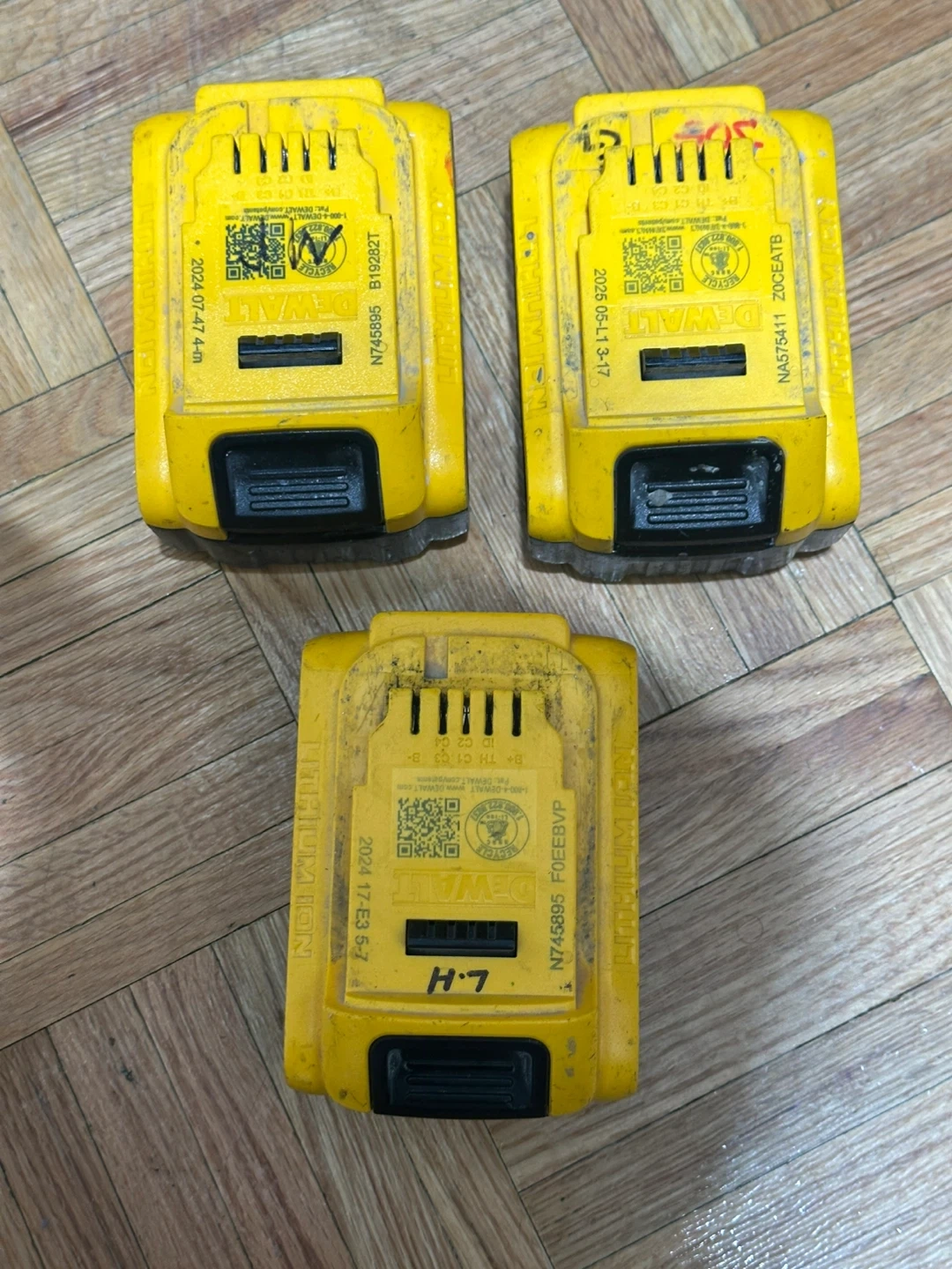 Selling three DeWalt 20V MAX XR 5Ah lithium-ion batteries. These are high-capacity batteries for your DeWalt power tools. They're a great way to keep your tools running longer on the job. Battery capacity is 5Ah.
