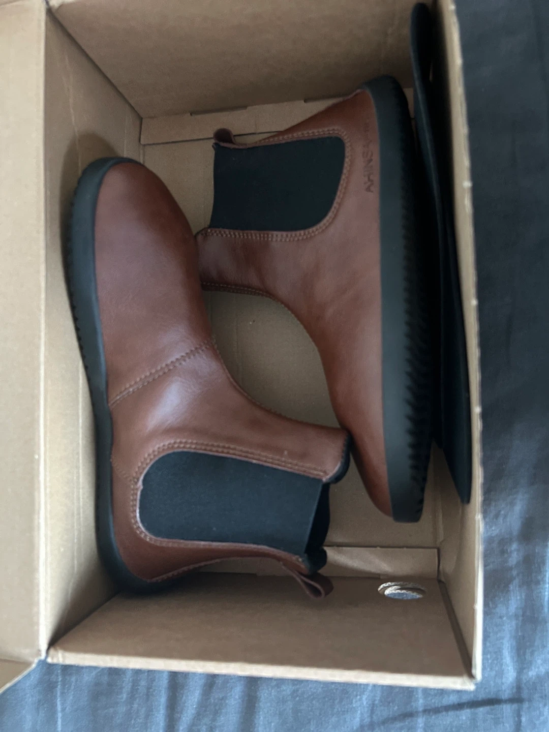 AHINSA SHOES Chelsea boots in a light brown colour. Vegan leather material. Comes with original box and shoe inserts. Size 36 EU. These boots are perfect for everyday wear!