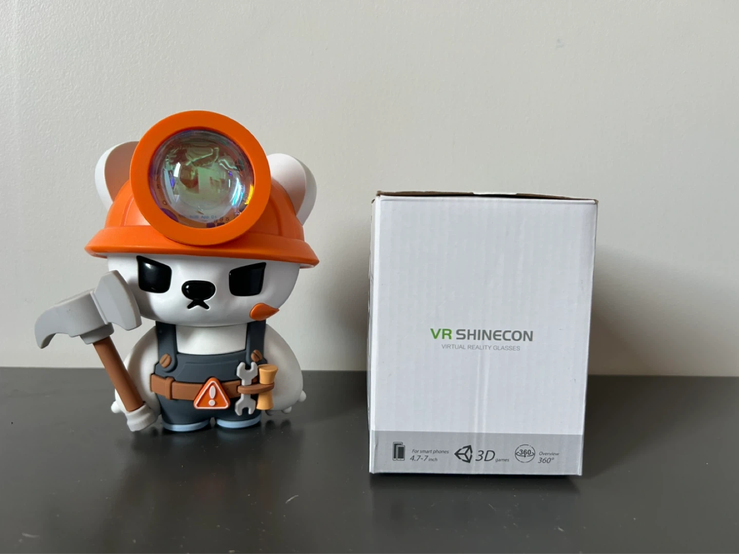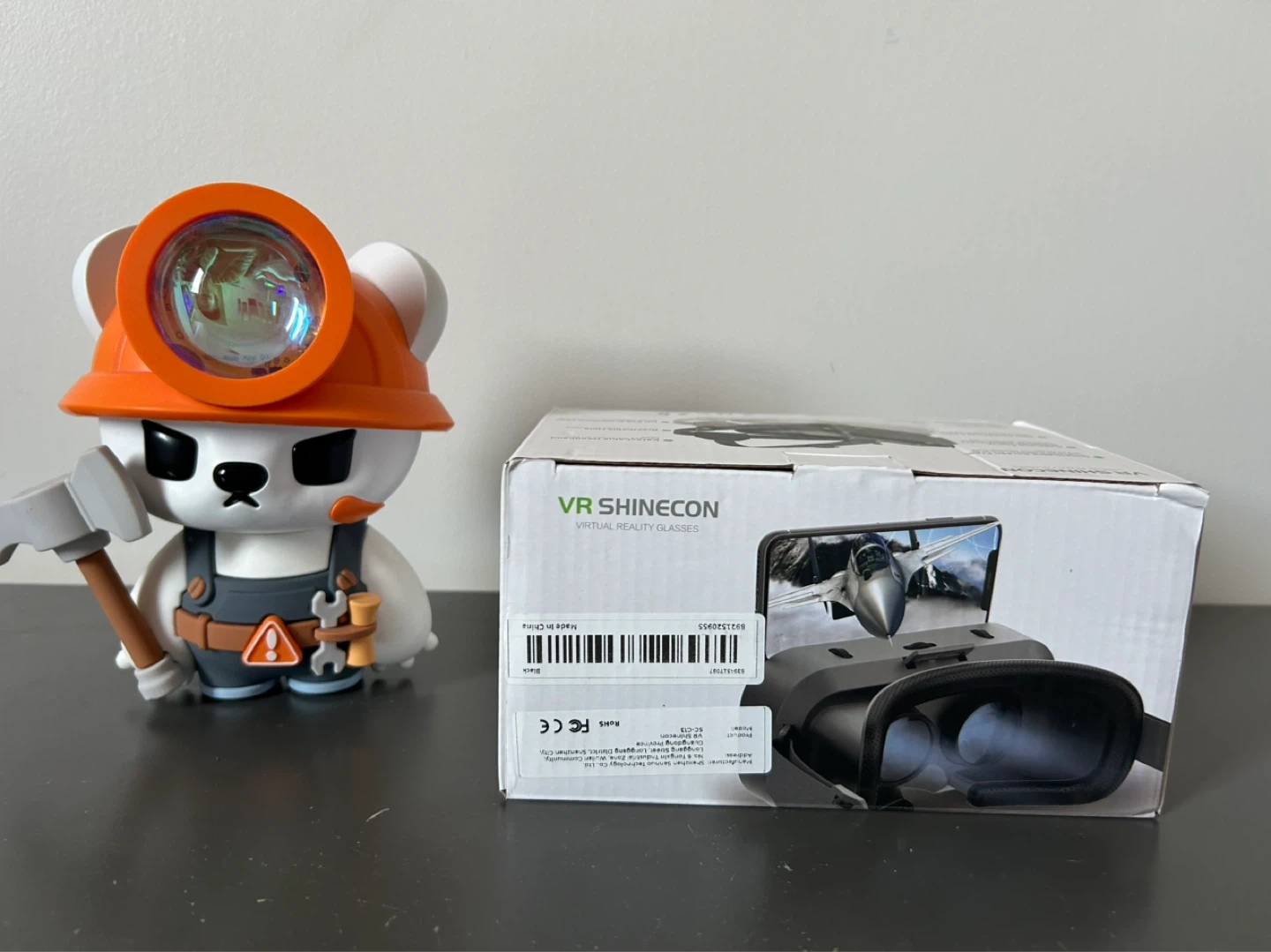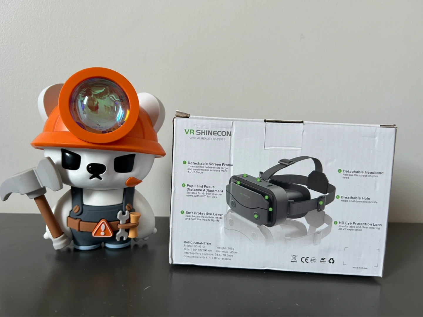SHINECON VR Virtual Reality Glasses, model SC-G13. Suitable for 4.7-7 inch mobile phones. Features adjustable lens and head strap. Includes original box and remote.