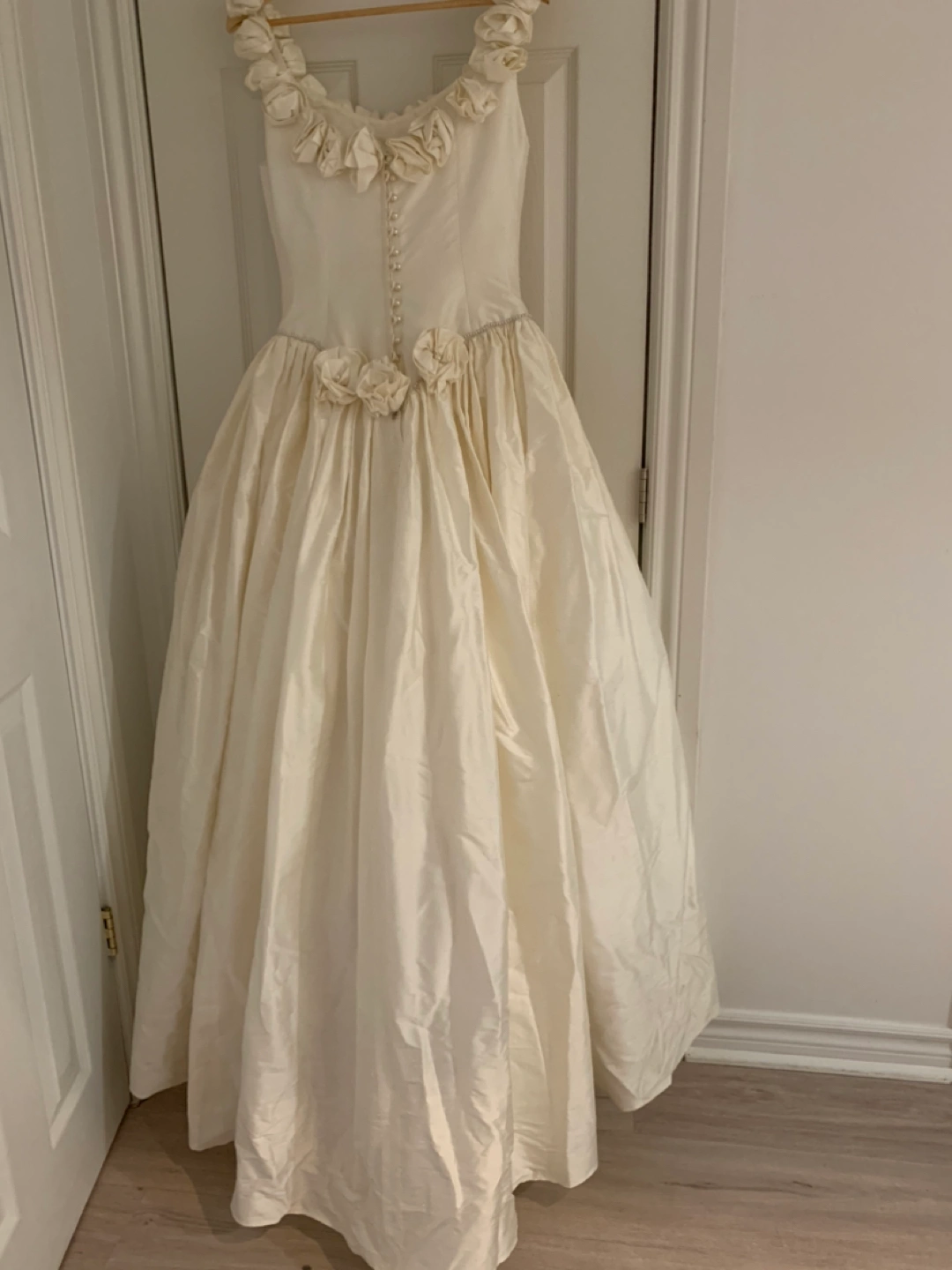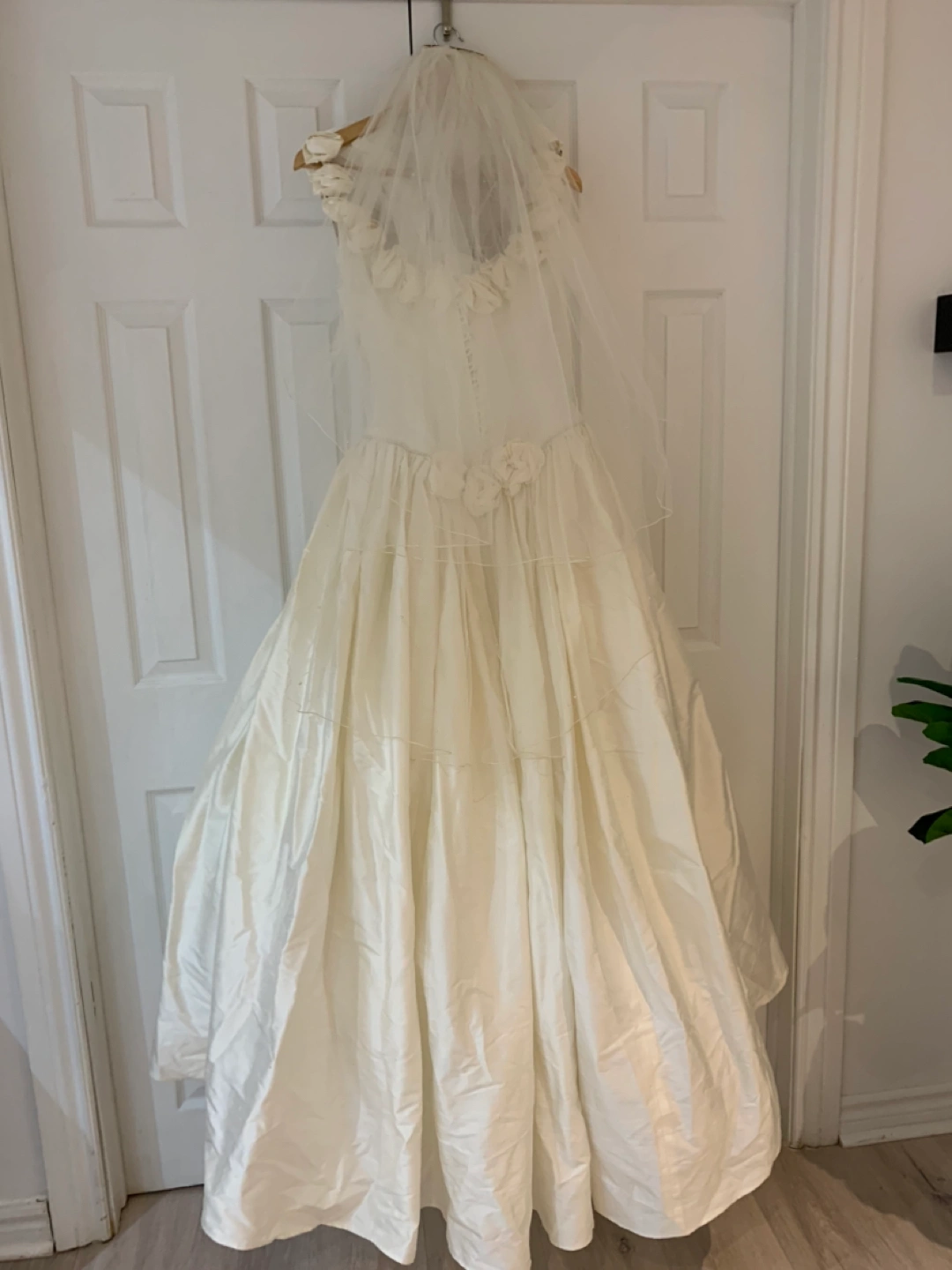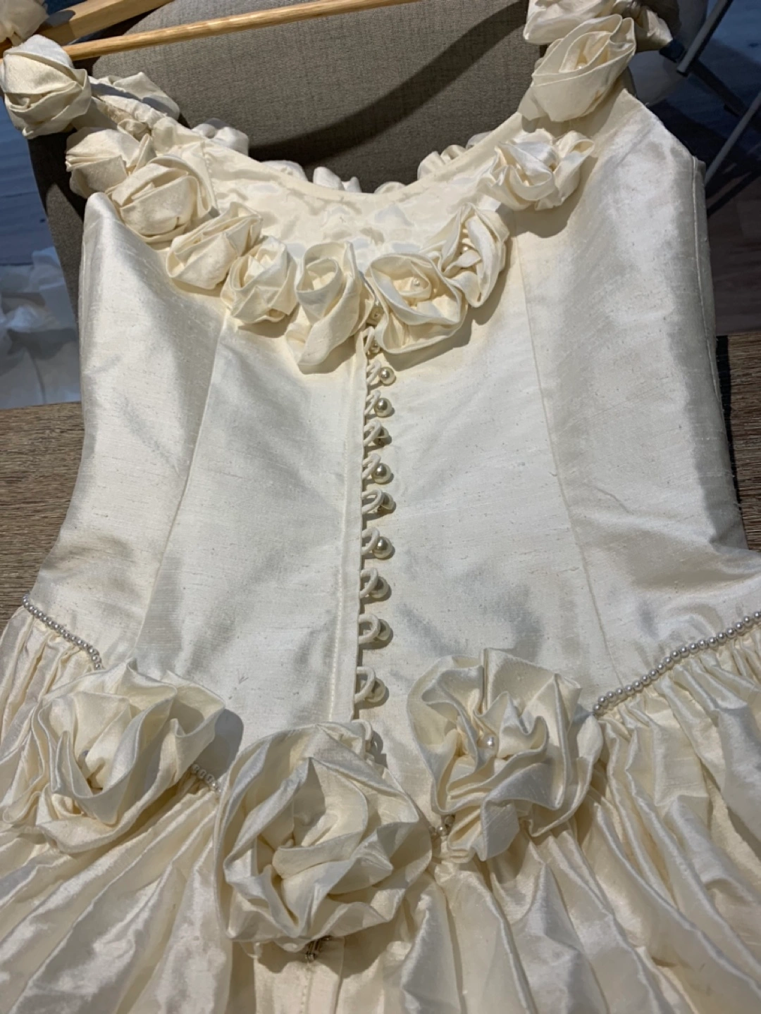 Silk Wedding Gown/Roses and Pearls - Veil/Gloves/Purse Included