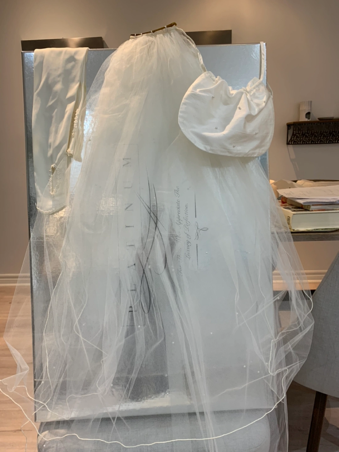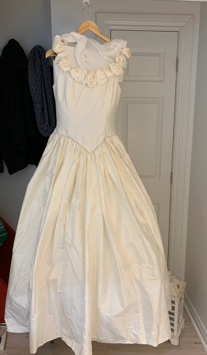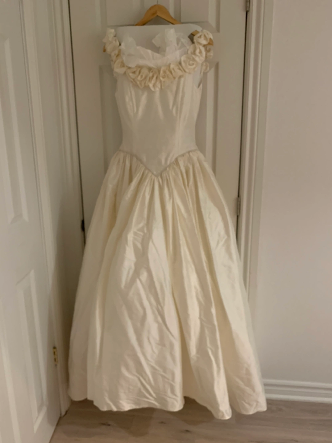 Silk Wedding Gown/Roses and Pearls - Veil/Gloves/Purse Included