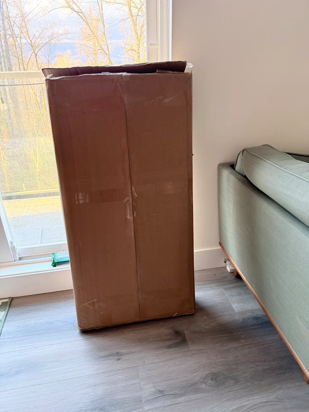 Fnova 39.37" modern round dining table for 4 people. Wood tabletop and brown finish. Suitable for dining rooms or kitchens. Unassembled and Includes original box.