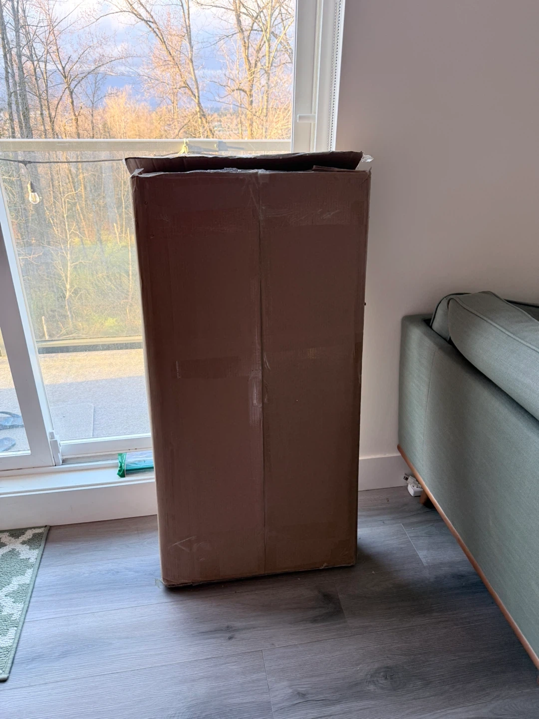 Fnova 39.37" modern round dining table for 4 people. Wood tabletop and brown finish. Suitable for dining rooms or kitchens. Unassembled and Includes original box.