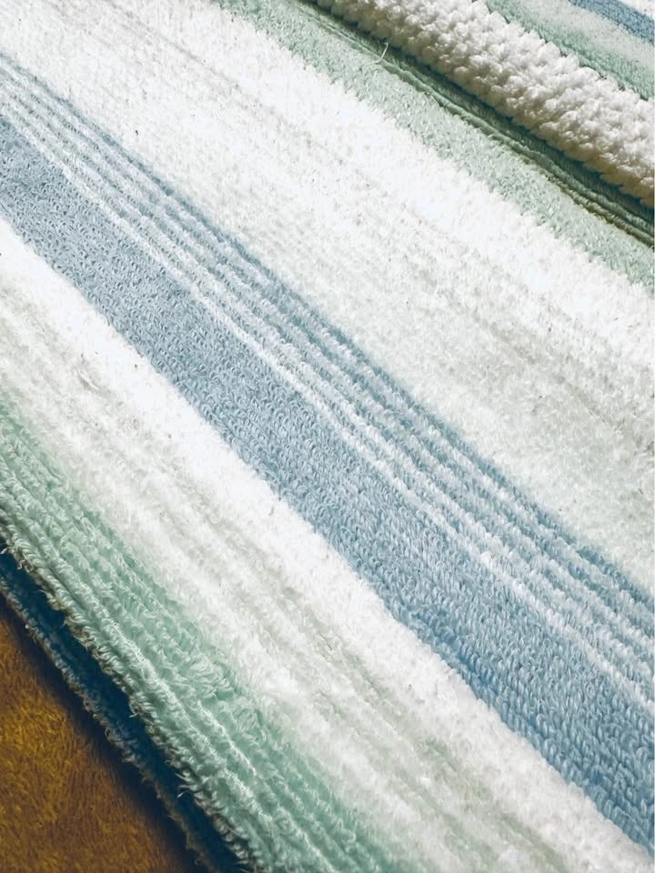 Color: white with soft green and blue stripes