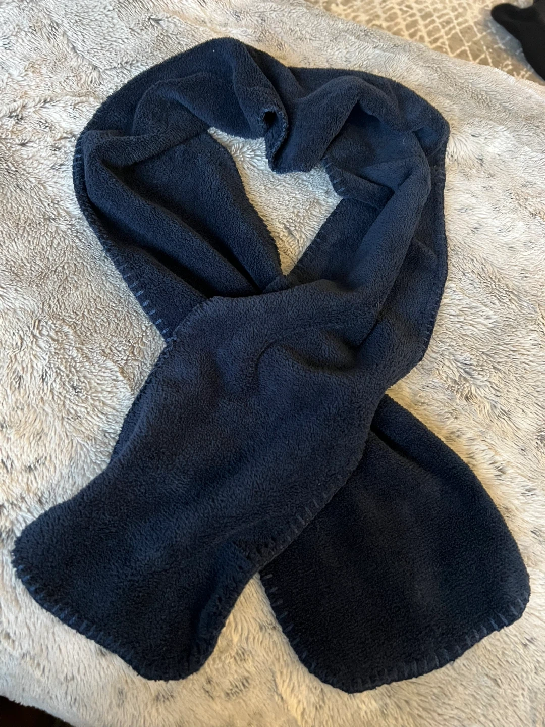 A cozy navy super soft fleece scarf, perfect for keeping warm on chilly days! It's in great condition and ready for a new home