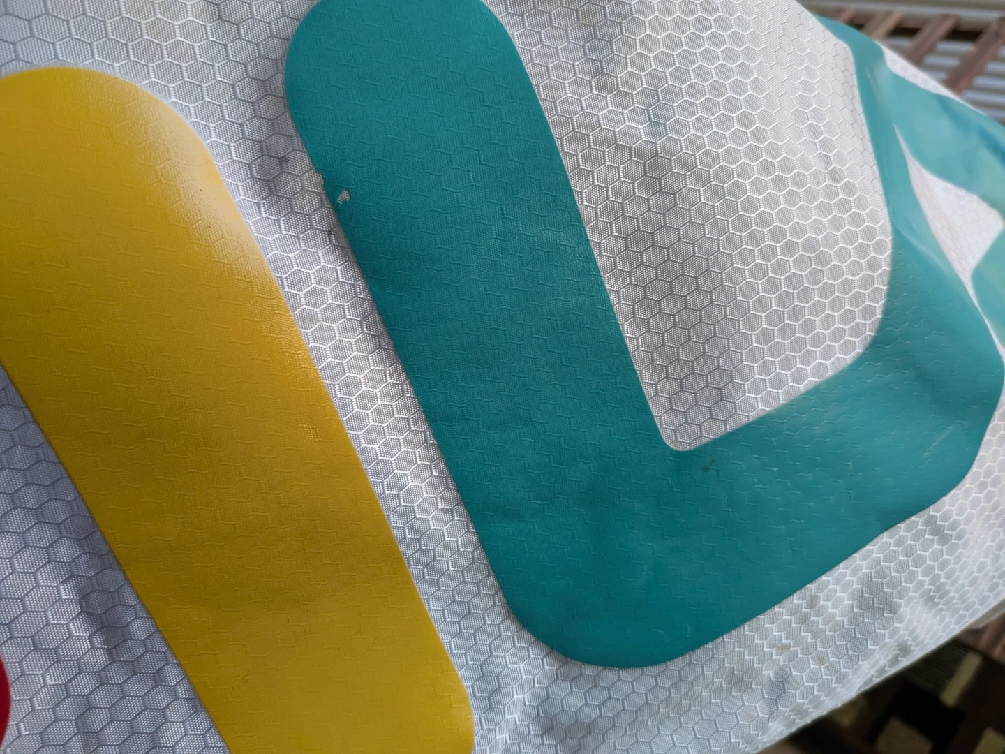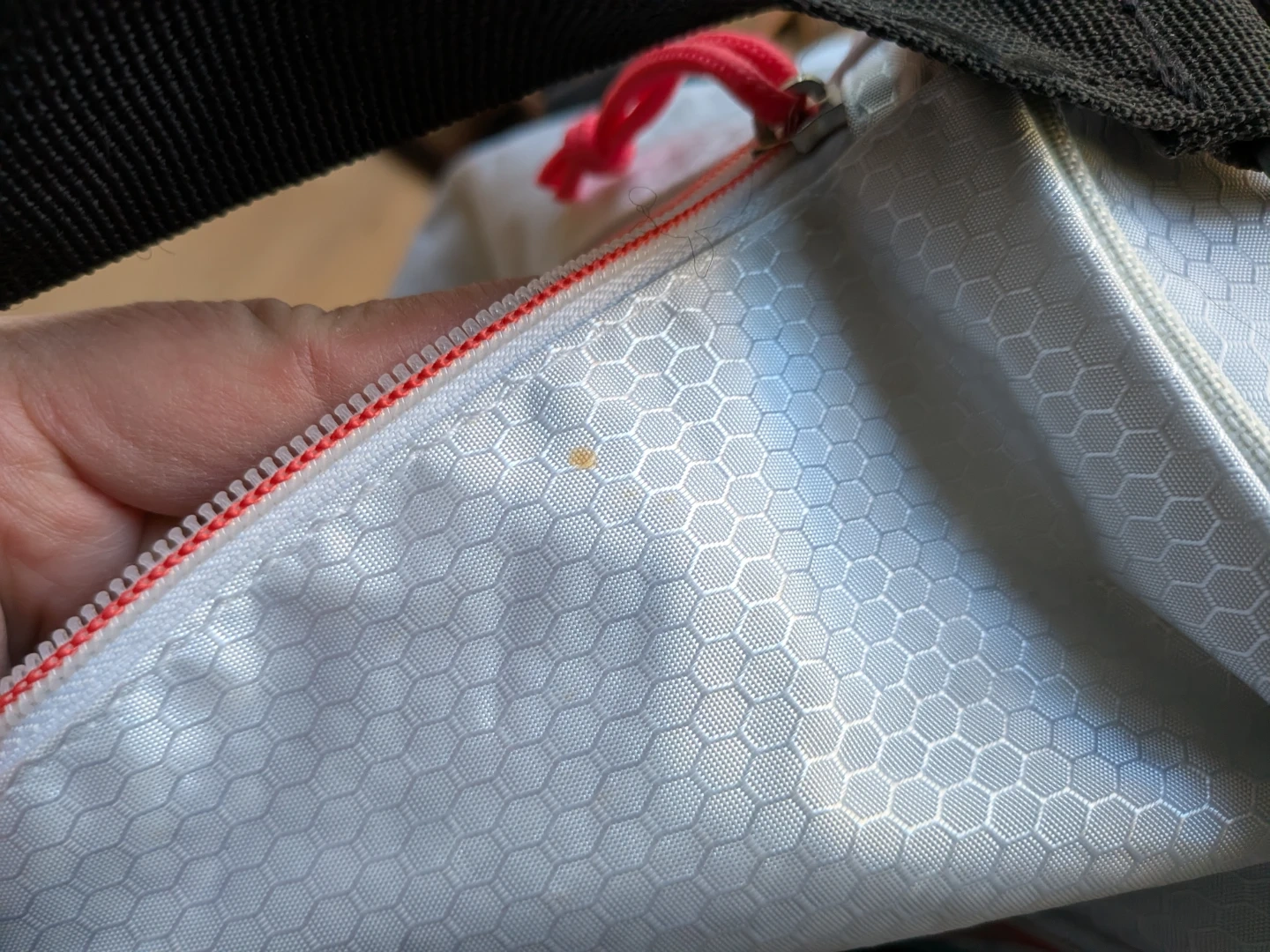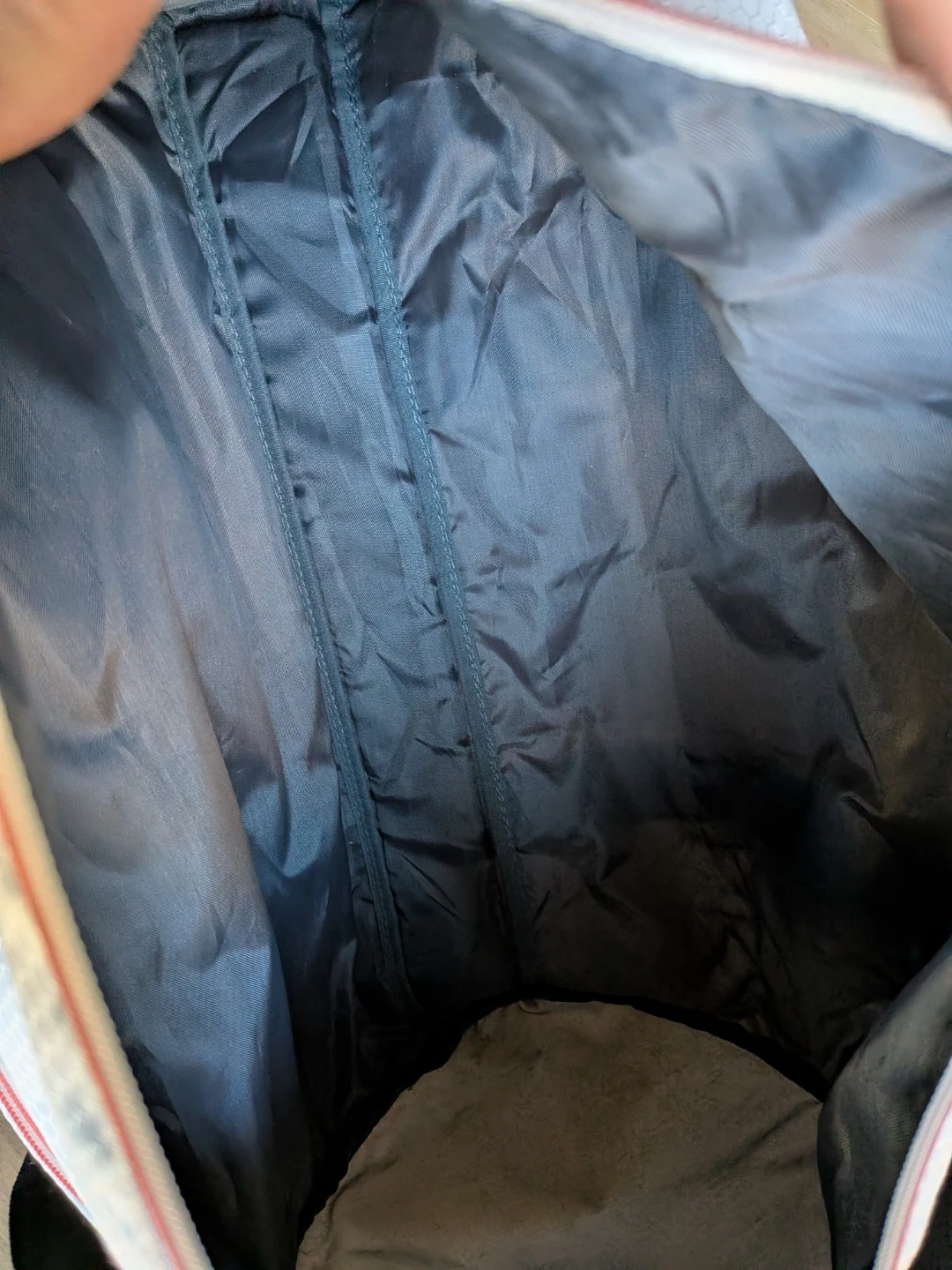 Add some colours to your workouts! Fell in love with this duffle bag but it's never quite fulfilled its gym potential - used it a handful of times for short trips but mainly to hold other bags. Measures approximately 10 inches in diameter and about 17.5" in width with one main compartment and a front compartment. Zippers all glide smoothly. Note some tugged threads/strings on the strap, some faded colours on the logo and a tiny yellow stain (see photos) but otherwise it's like new.