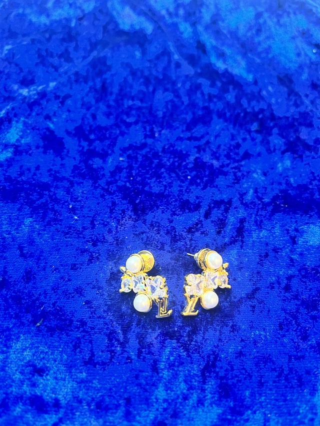 Adorn your ears with these classic earrings featuring 18k gold plating, crystals and a pearl accent. These earrings are in new condition. Perfect for adding a touch of elegance to any outfit.