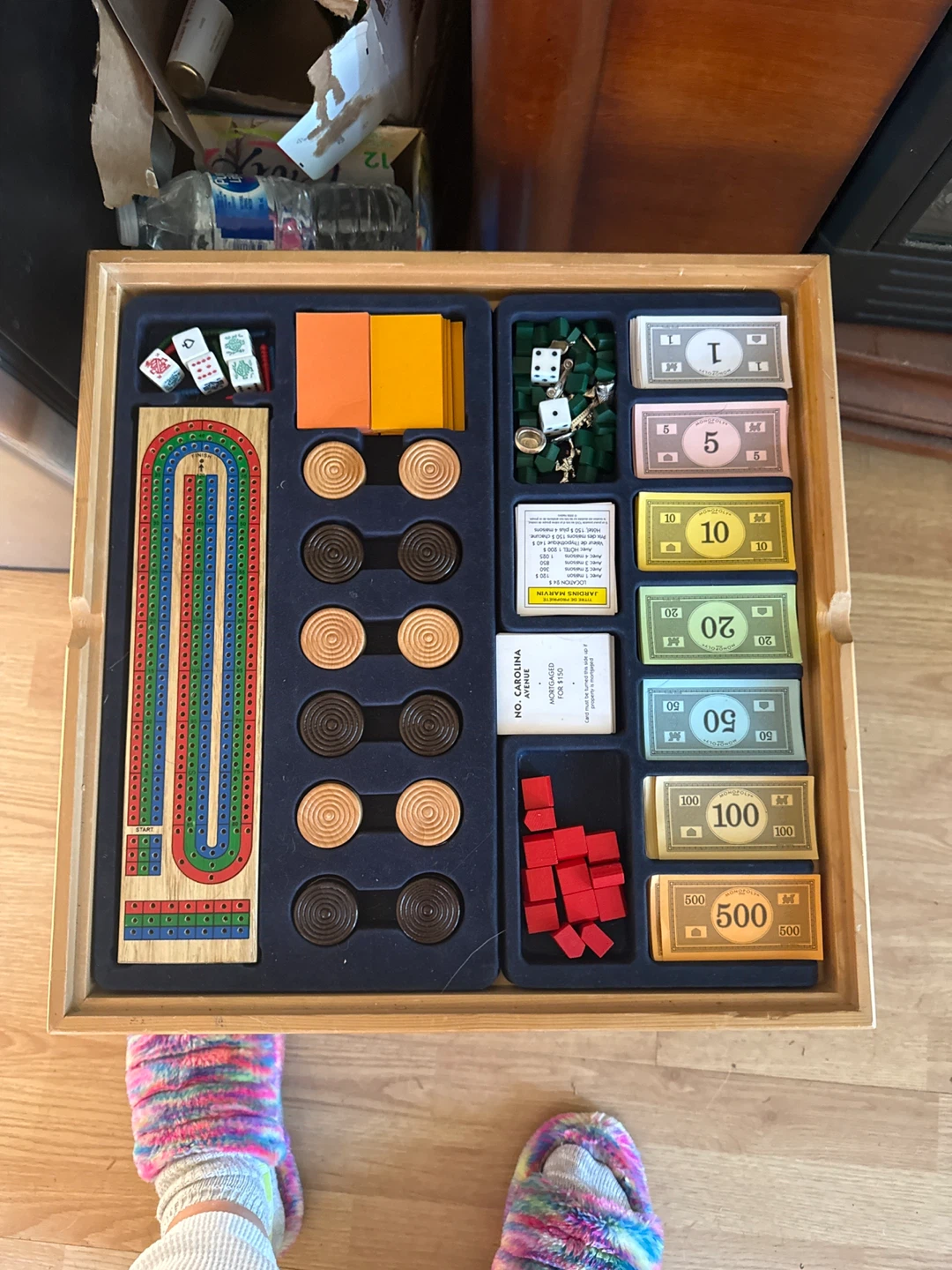 Selling a set of classic board games! Includes Monopoly, Sorry, Checkers and Cribbage. All are in great shape and ready for family game night