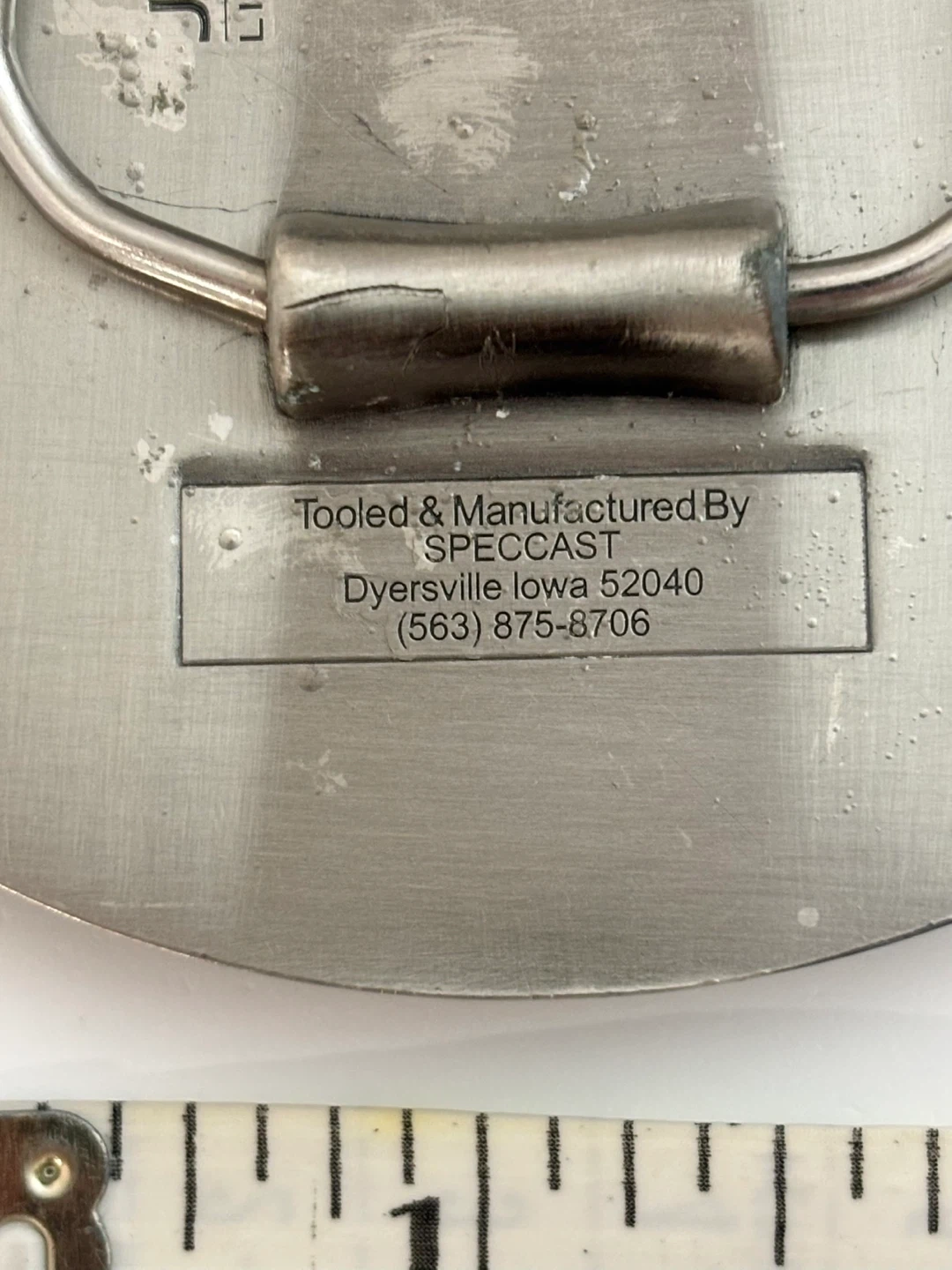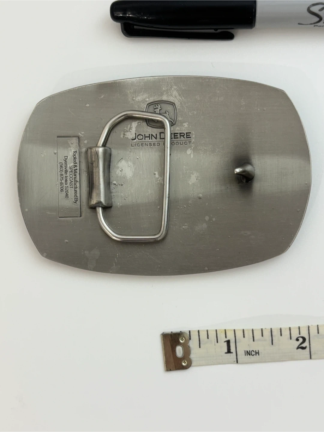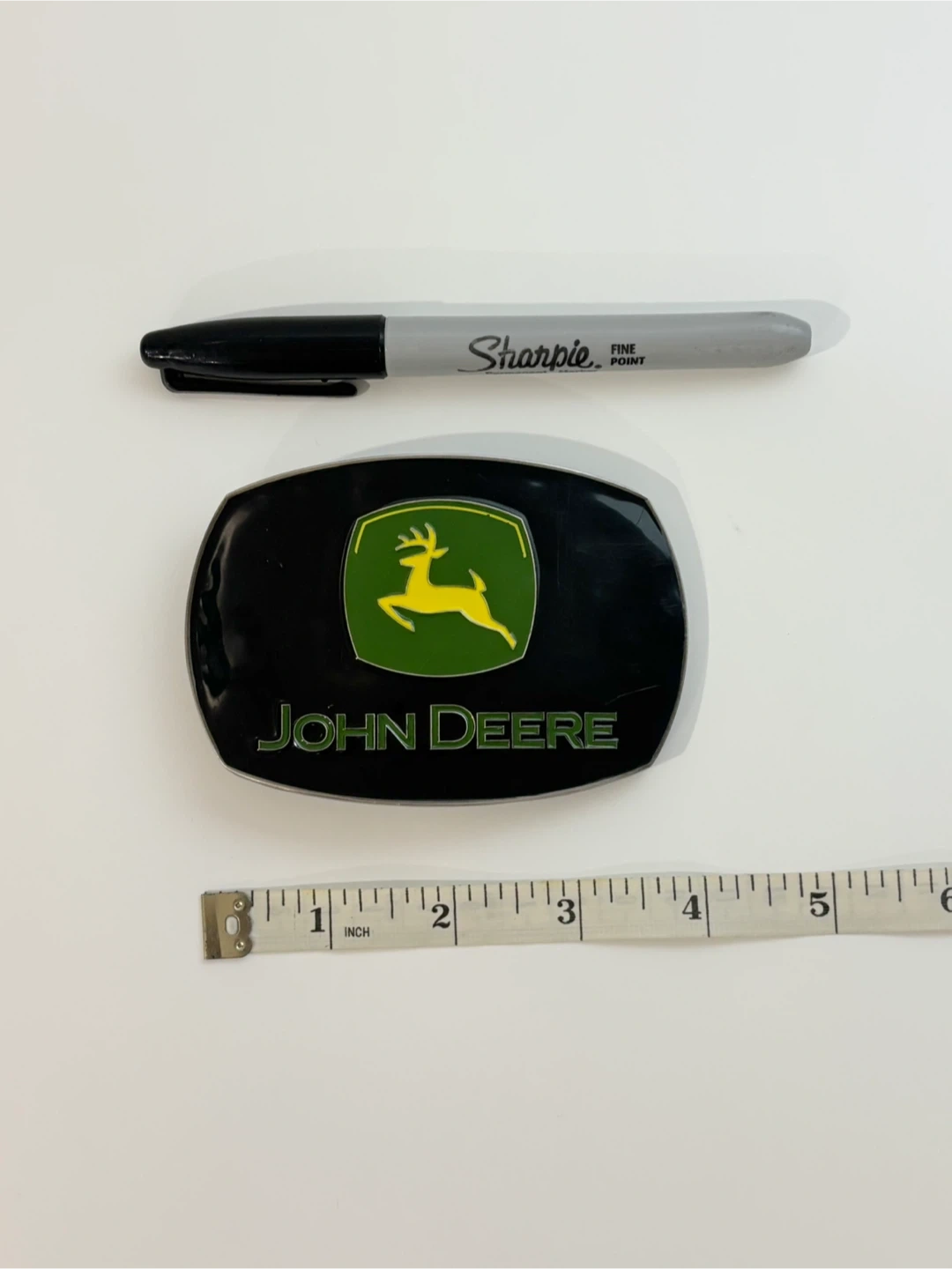 Features the classic John Deere logo with a deer and "JOHN DEERE" text. It's made of metal with a black enamel finish. Perfect for any John Deere enthusiast or collector!