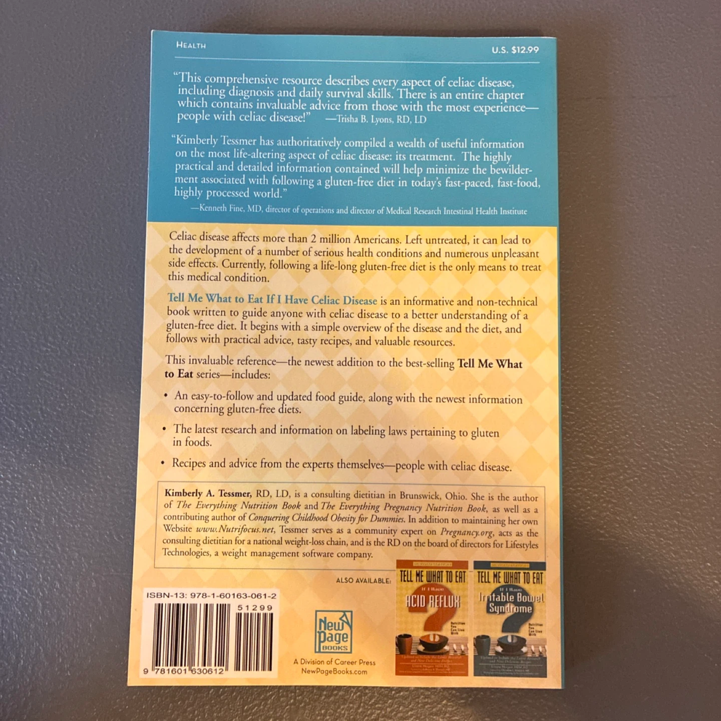 Selling "Tell Me What to Eat If I Have Celiac Disease" by Kimberly A. Tessmer. This book provides nutrition advice for those living with celiac disease, offering guidance and recipes for gluten-free diets. It includes the latest research and delicious recipes for gluten-free diets