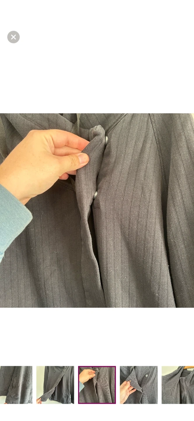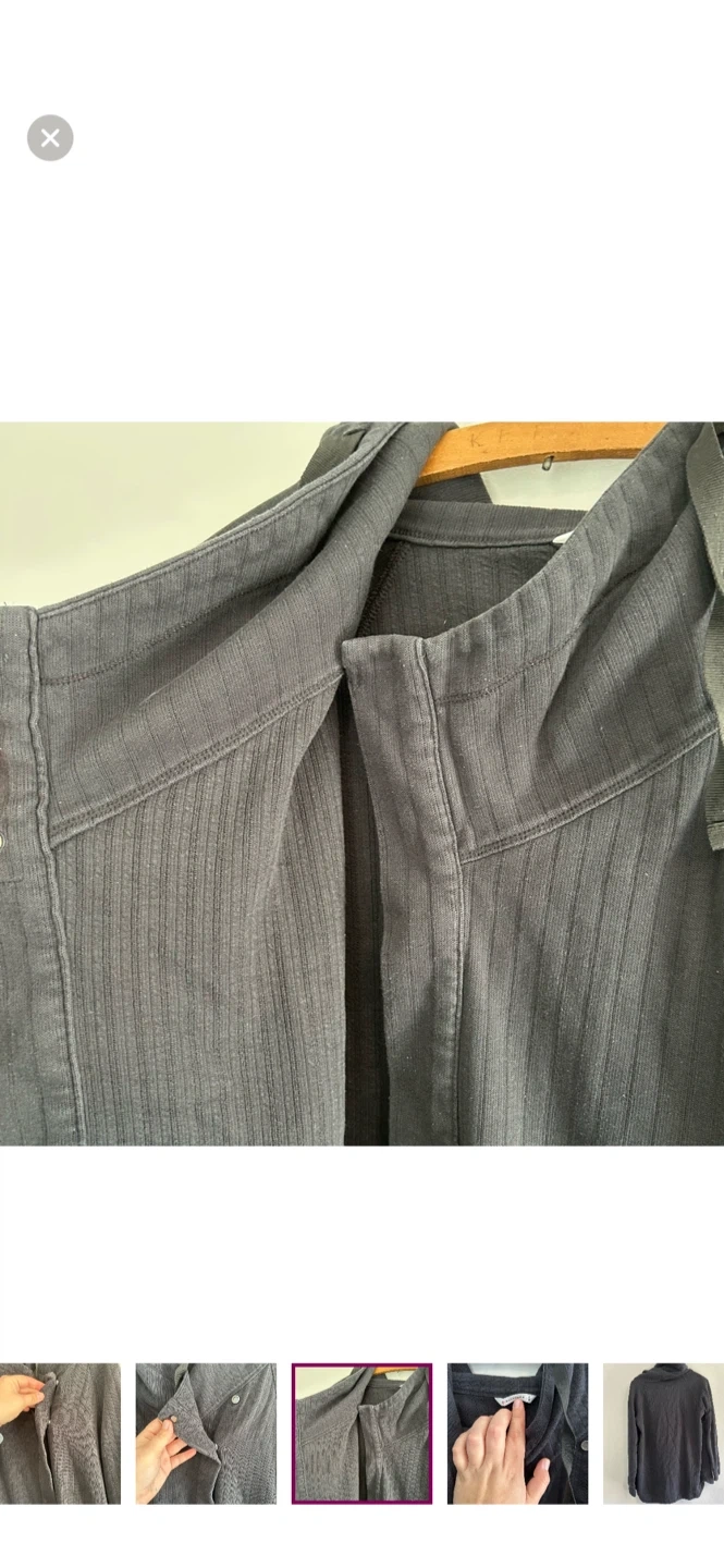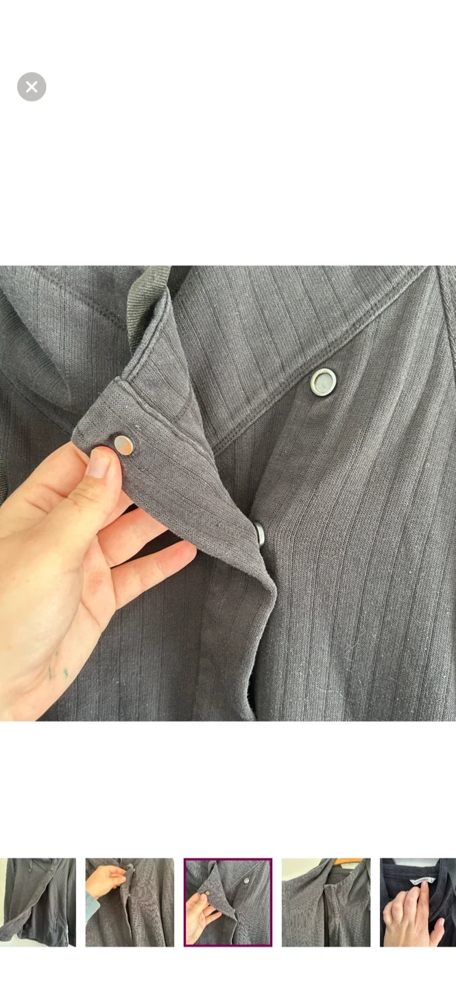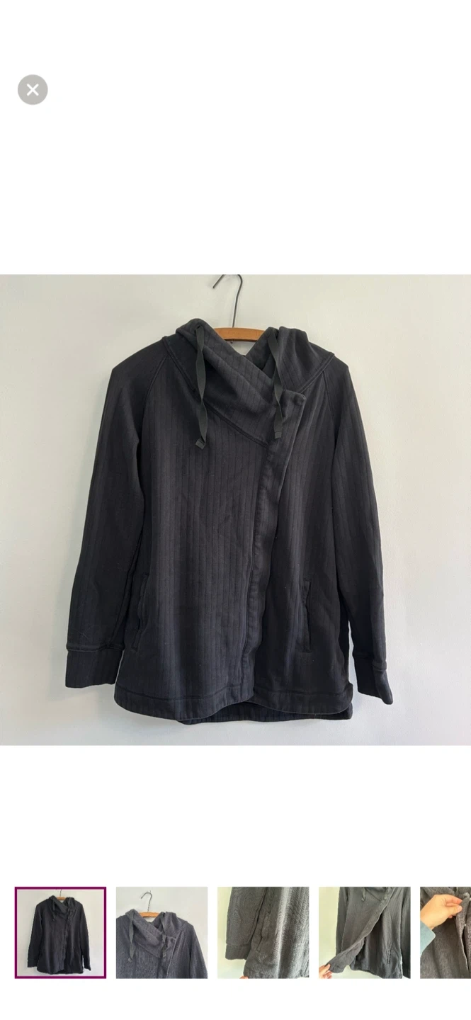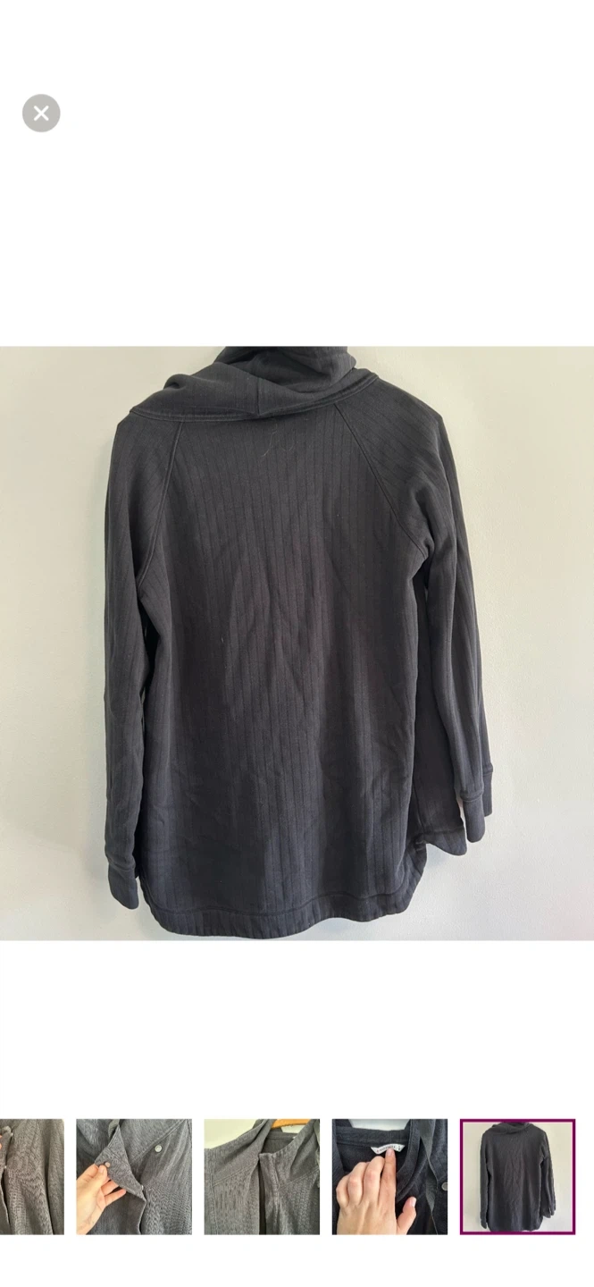 Shambhala brand. Long sleeve cowl neck cardigan with side wrap style button closure. Black In colour. Size large. Like new condition, light pilling.