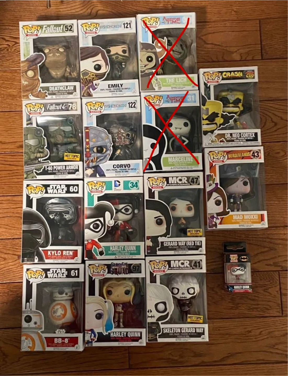 Selling a collection of Funko Pop! vinyl figures, all never opened, mint condition, and from a smoke-free home.