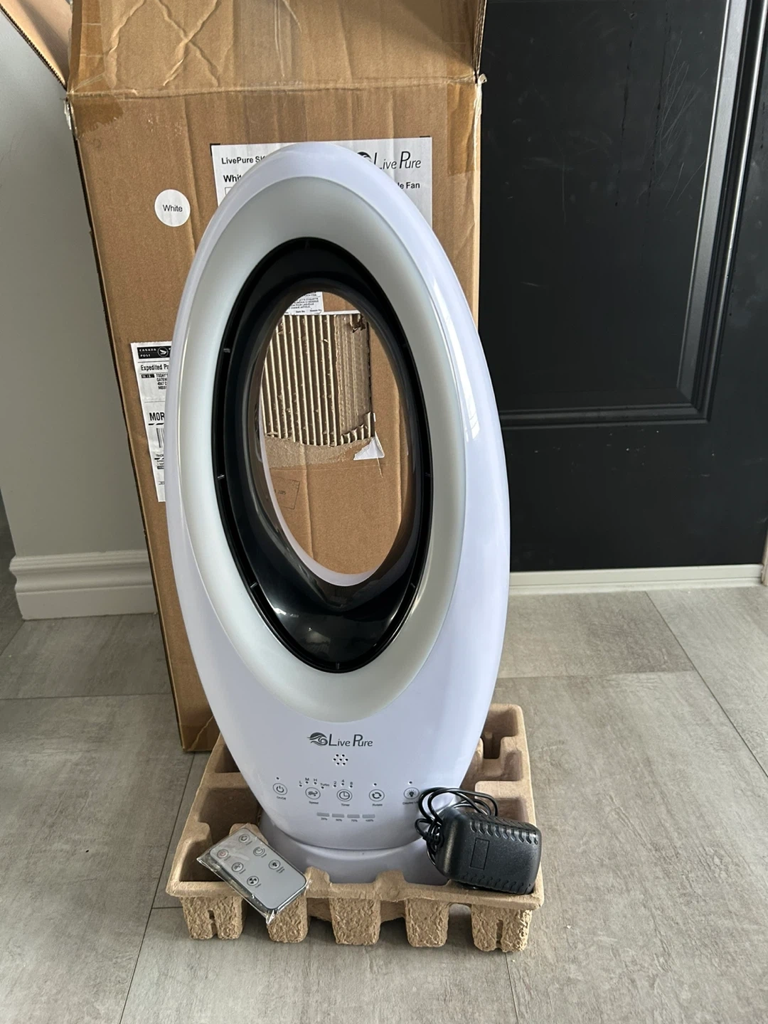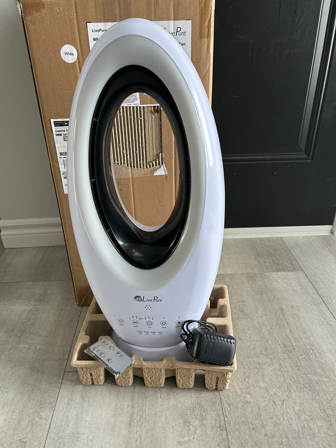 This is a brand new LivePure tower fan in white. It comes with a remote control and power adapter. Message if interested.