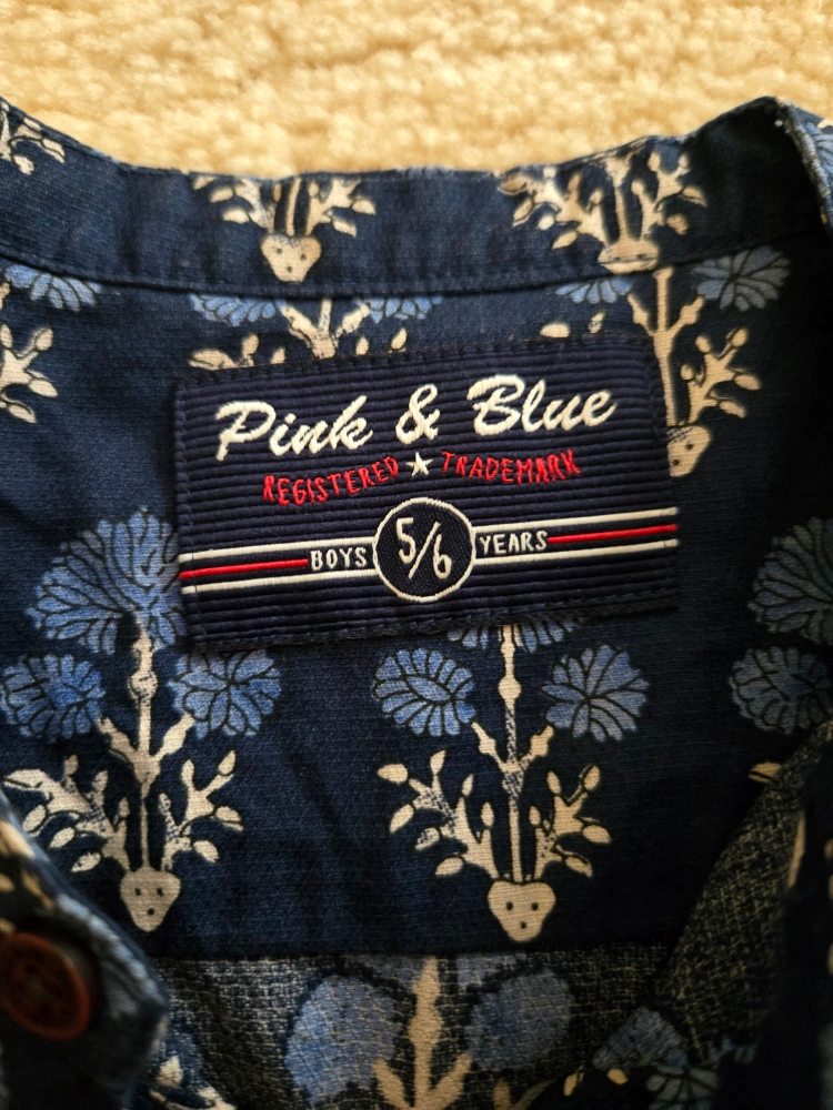 This is a cute boys cotton short kurta/ shirt in size 5/6 years. It features a stylish blue floral print and is in great condition. Perfect for your little one!