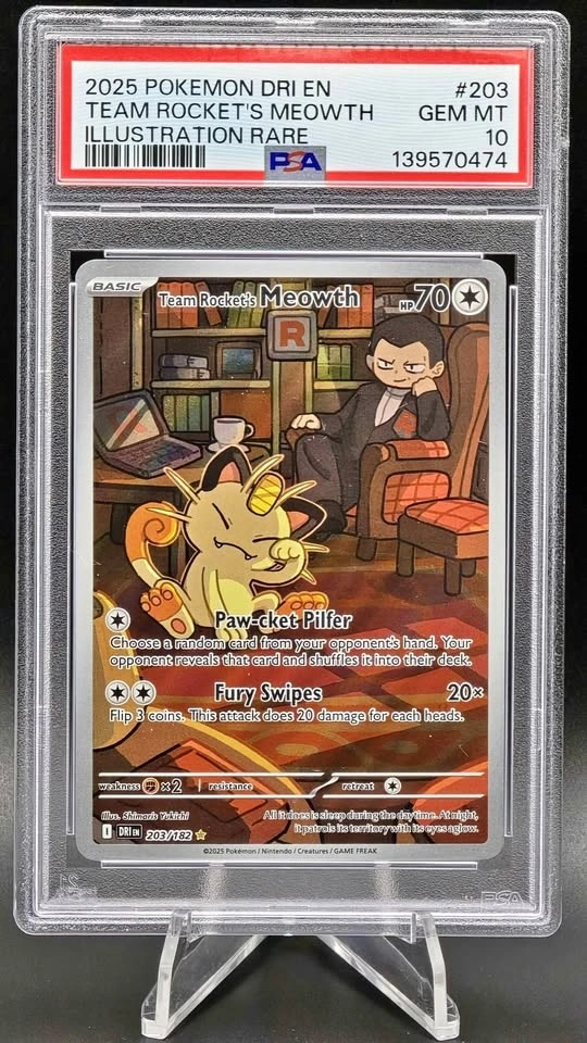 Pokemon PSA 10 – Team Rocket's Meowth 203– Destined Rivals - GEM