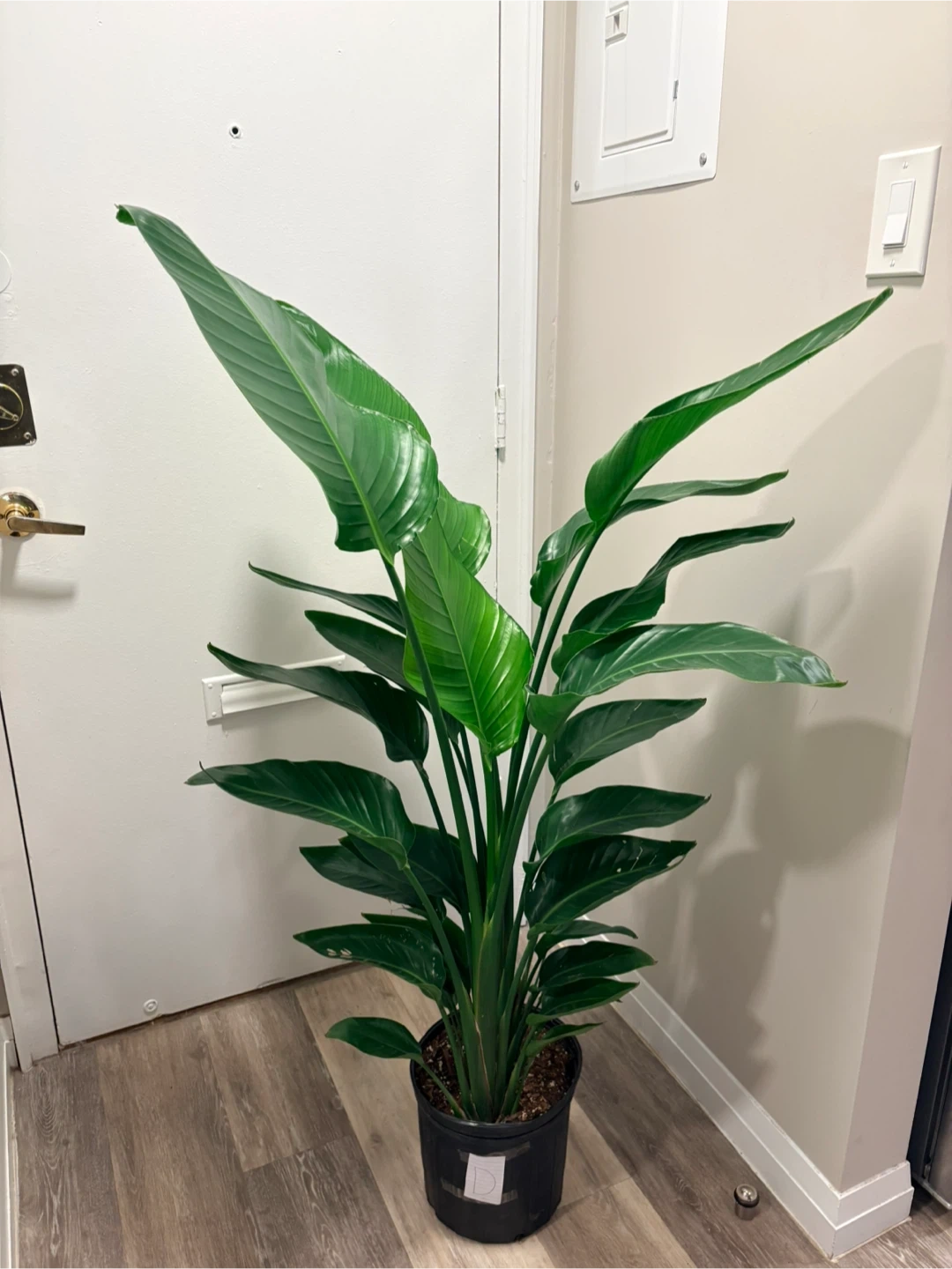 Healthy Birds of Paradise plant with large, glossy green leaves. Comes in a 10” black nursery pot. It's a beautiful statement piece for any home!