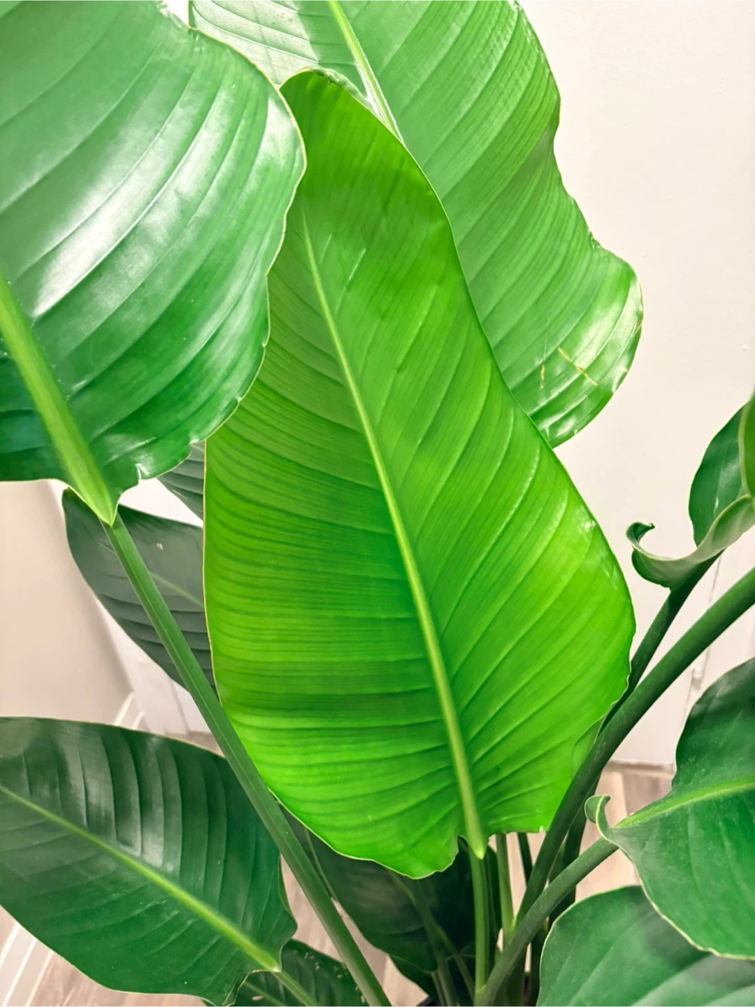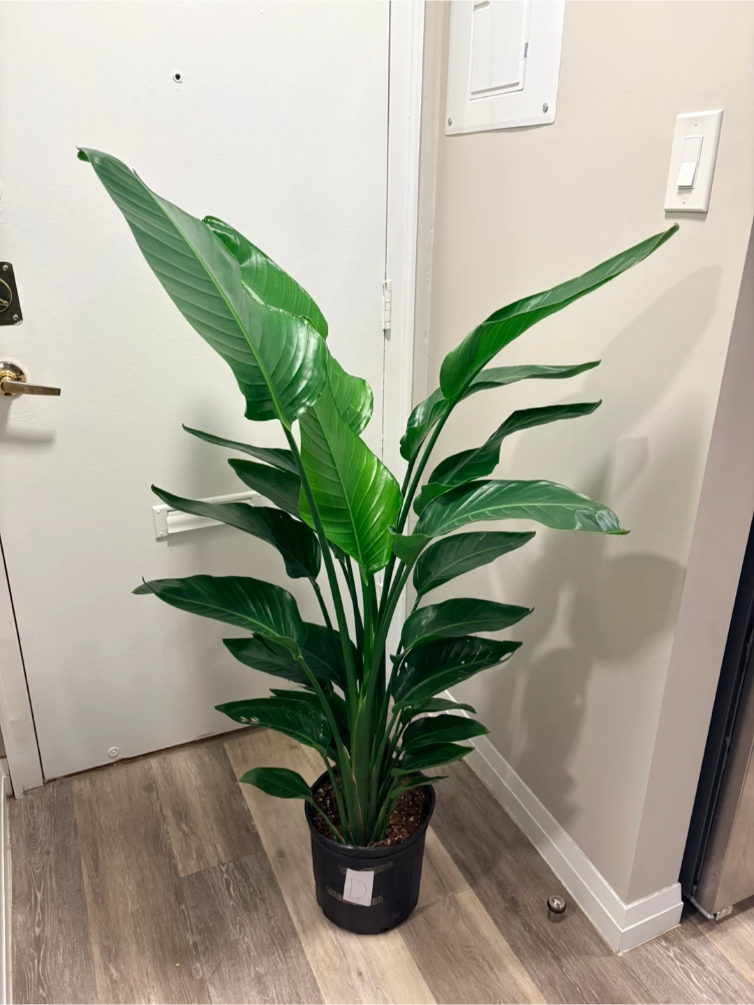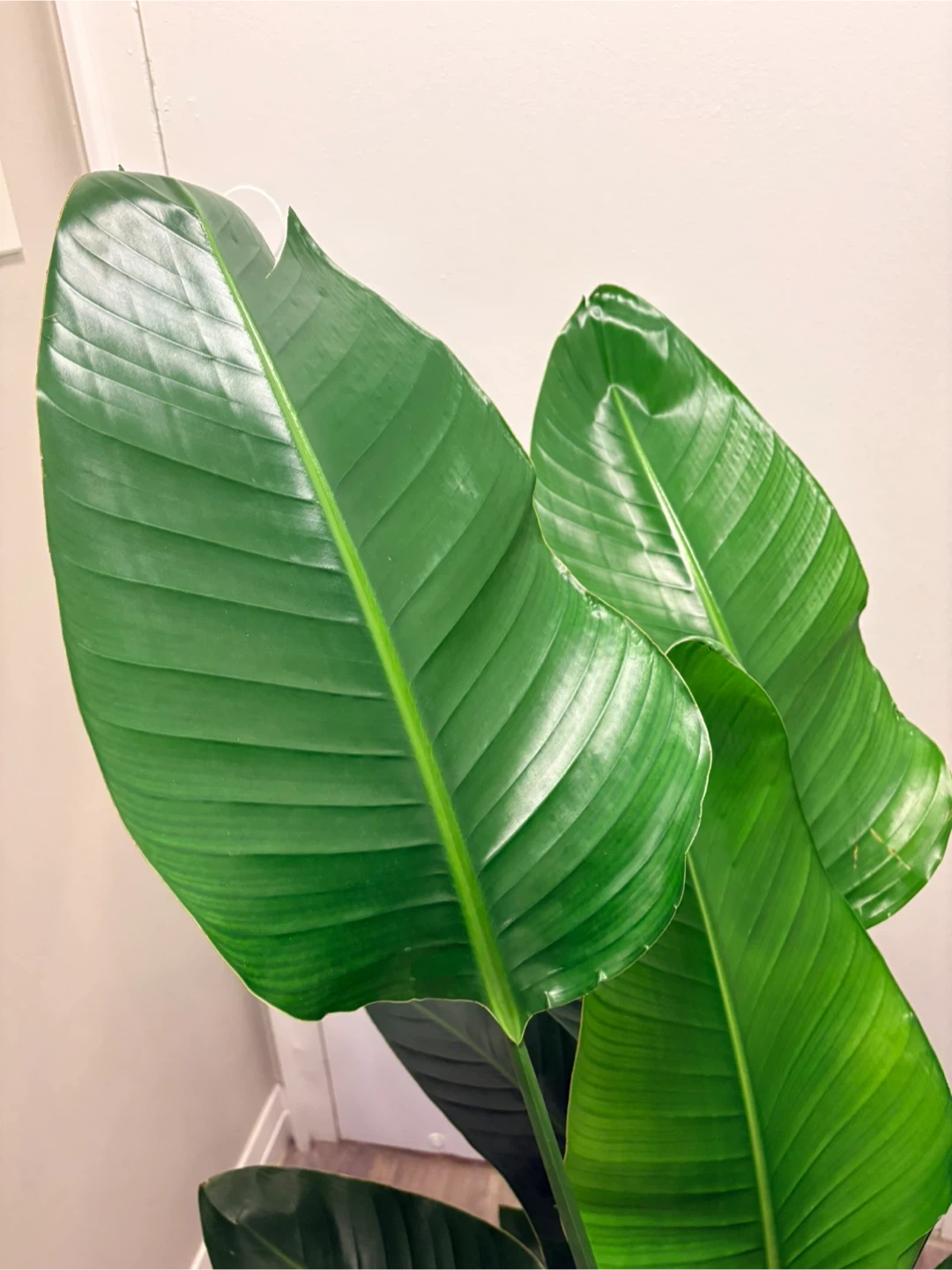 Healthy Birds of Paradise plant with large, glossy green leaves. Comes in a 10” black nursery pot. It's a beautiful statement piece for any home!