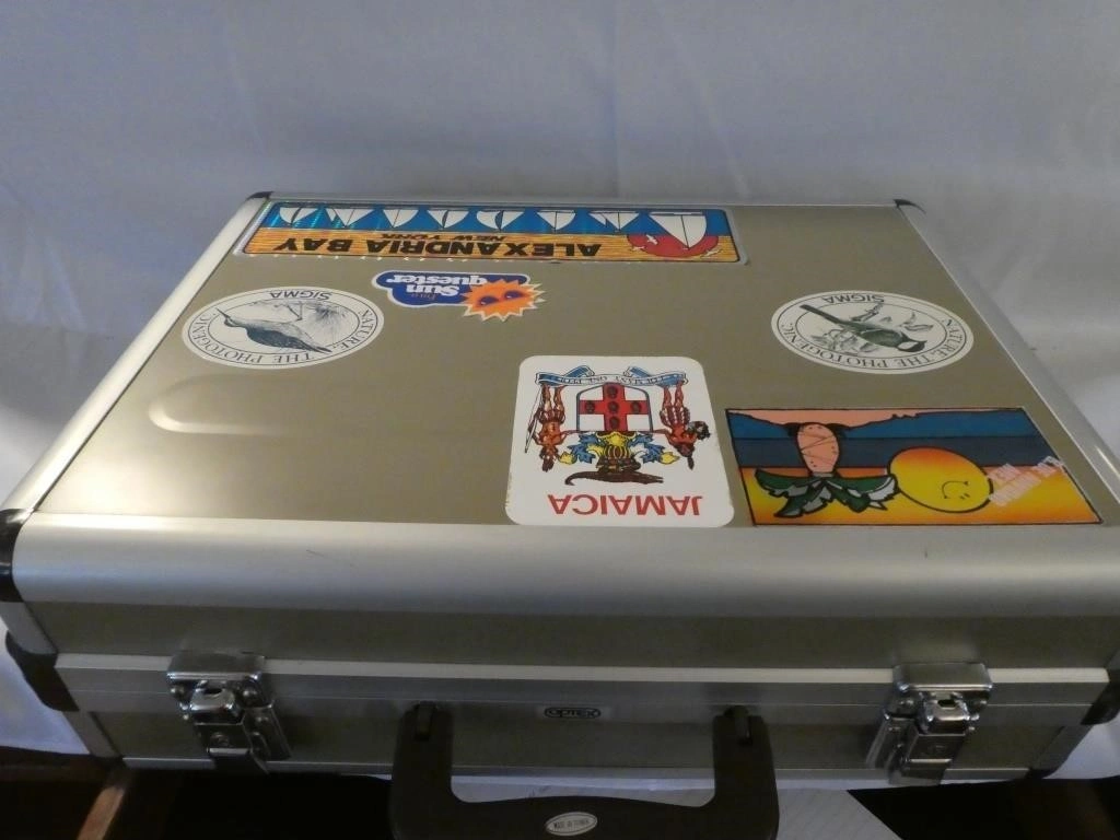 Aluminum hard carrying case with fitted foam + cool vintage stickers
