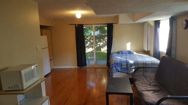 Walkout basement with ample sunlight and backyard available for rent. Ideal for a single young professional or a young couple. This is an end unit townhouse in a kid-friendly and safe community. Located 10 minutes walking distance to Cooksville GO station in Mississauga, 2 minutes to major bus routes, and close to grocery stores, major hospitals, parks, and schools (Postal code: L5B1V7). Closest intersection - 1-minute walk: Confederation and Hillcrest. Rent is $1,400 per month, including unlimited high-speed internet and all utilities. Basic furnishing (queen bed, sofa, closet, chairs, and center table) is included. Washer and dryer will be shared on weekends. We are a loving and caring family and looking to host like-minded individuals. P.S. – This house has been lucky for previous residents! Air conditioning, heat, water, hydro, fridge/freezer, and 1 parking spot included. 700 sqft. Month-to-month agreement. For rent by owner.