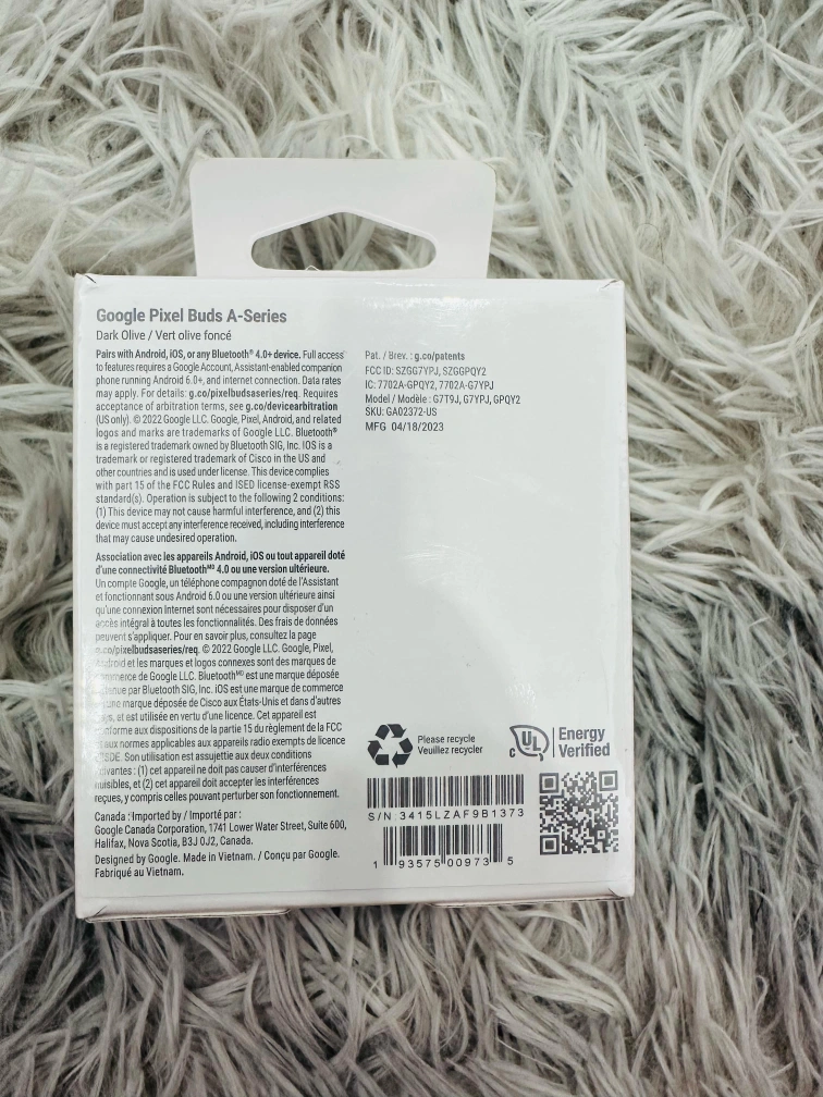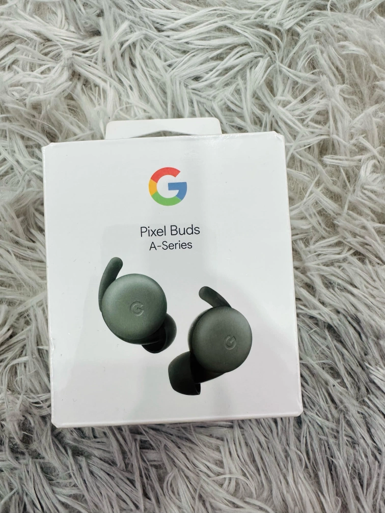 Brand new, unopened Google Pixel Buds A-Series in dark olive. Wireless earbuds, compatible with Android and iOS devices. Full access to Google Assistant. Includes charging case.