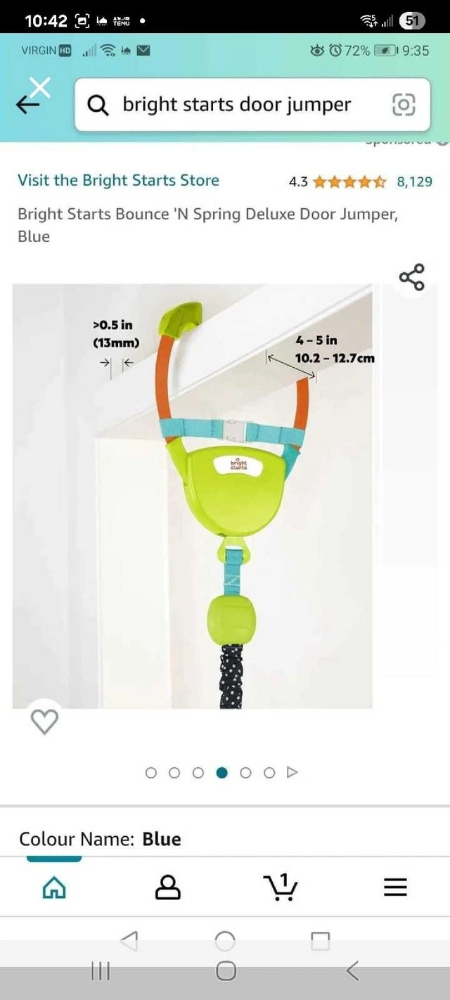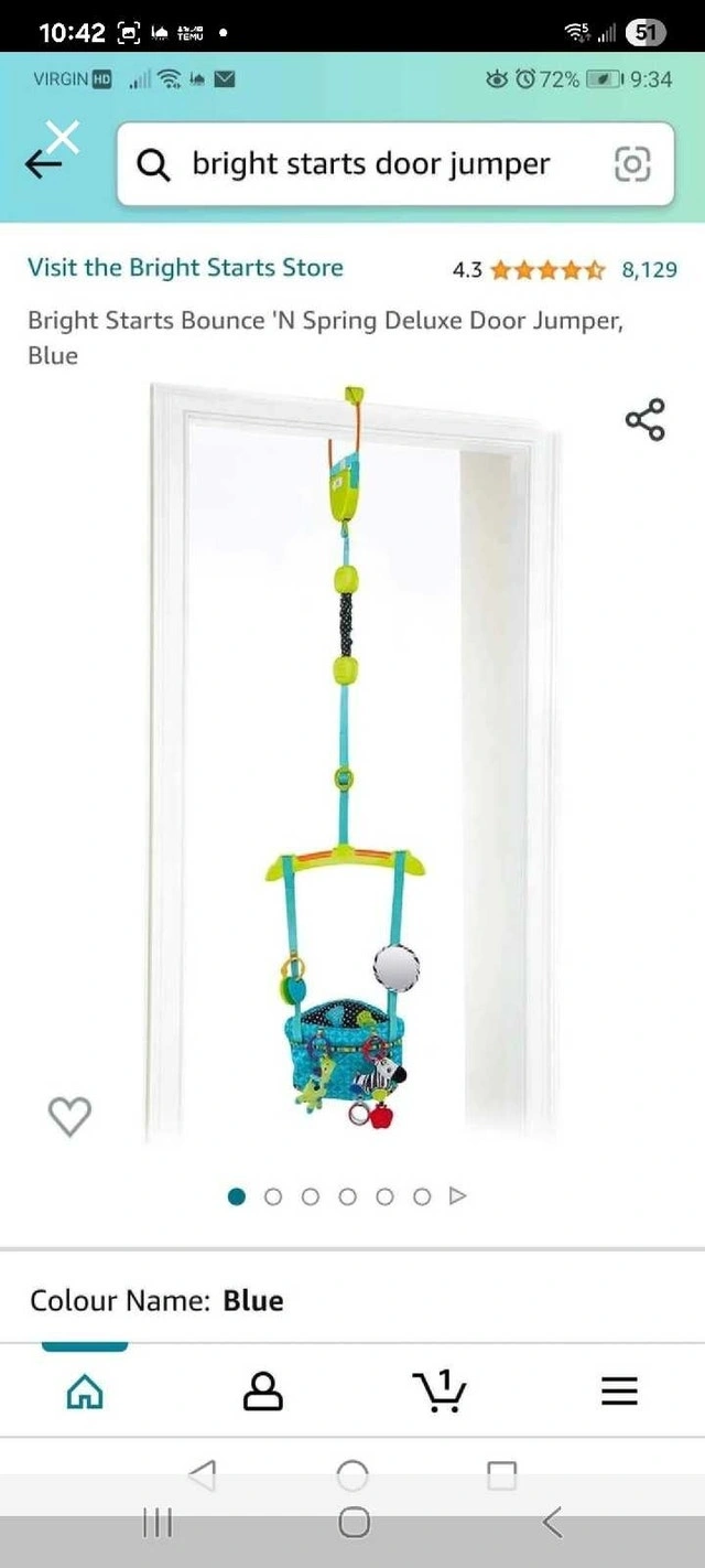 Keep your little one entertained with this Bright Starts Bounce 'N Spring Deluxe Door Jumper! It provides hours of bouncing fun and helps develop motor skills. It easily attaches to most door frames, making it perfect for any home. * Attaches to most doorframes * Adjustable straps for a customized height * Includes interactive toys to keep baby engaged. Cash accepted.