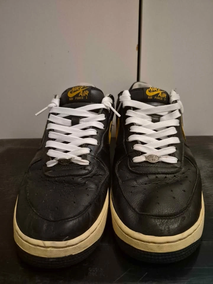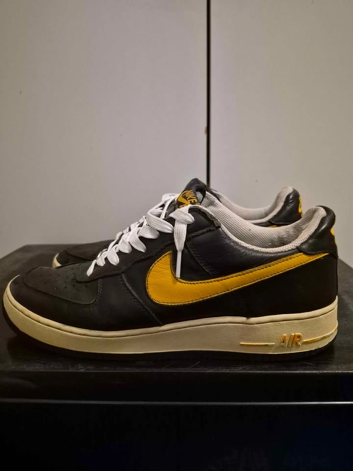 Vintage Nike Air Force 1 '06 "Fraternity", black and university gold colorway from 2004. Men's size 11, used in fairly good condition hence the price. Pick up in Vancouver around Knight and 33rd.