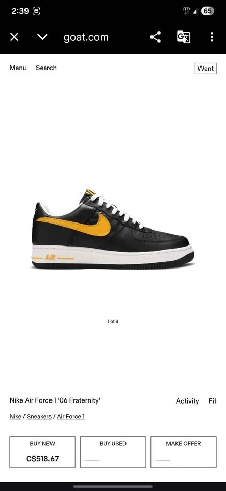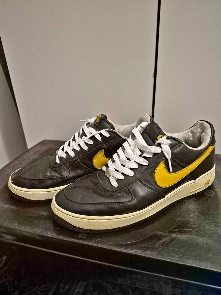Vintage Nike Air Force 1 '06 "Fraternity", black and university gold colorway from 2004. Men's size 11, used in fairly good condition hence the price. Pick up in Vancouver around Knight and 33rd.