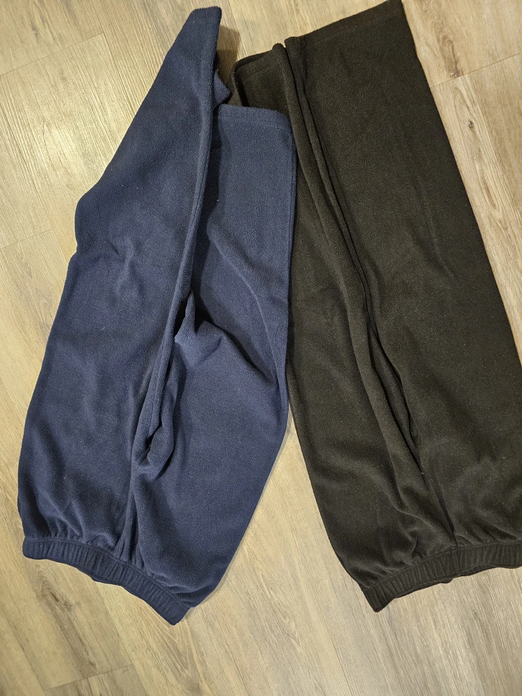 Two pairs of fleece pants in great condition! One is a nice navy blue and the other is Black of Children place.