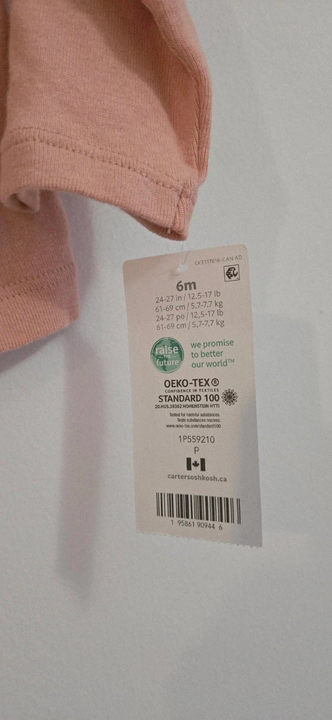 New w tags!Carters pink cardigan for baby girls. Size 6 months, fits 12.5-17 lb or 5.7-7.7 kg. Made from soft fabric.