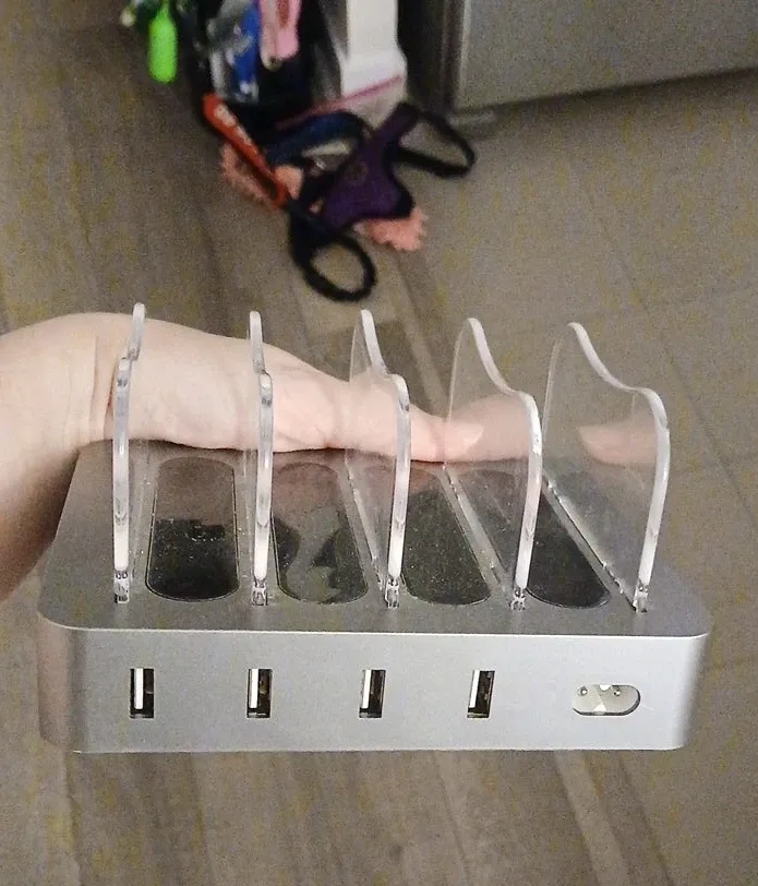 Selling a handy USB charging station with dividers! This is perfect for keeping all your devices organized while they charge. It has multiple USB ports so you can charge several devices at once. Great for decluttering your space!