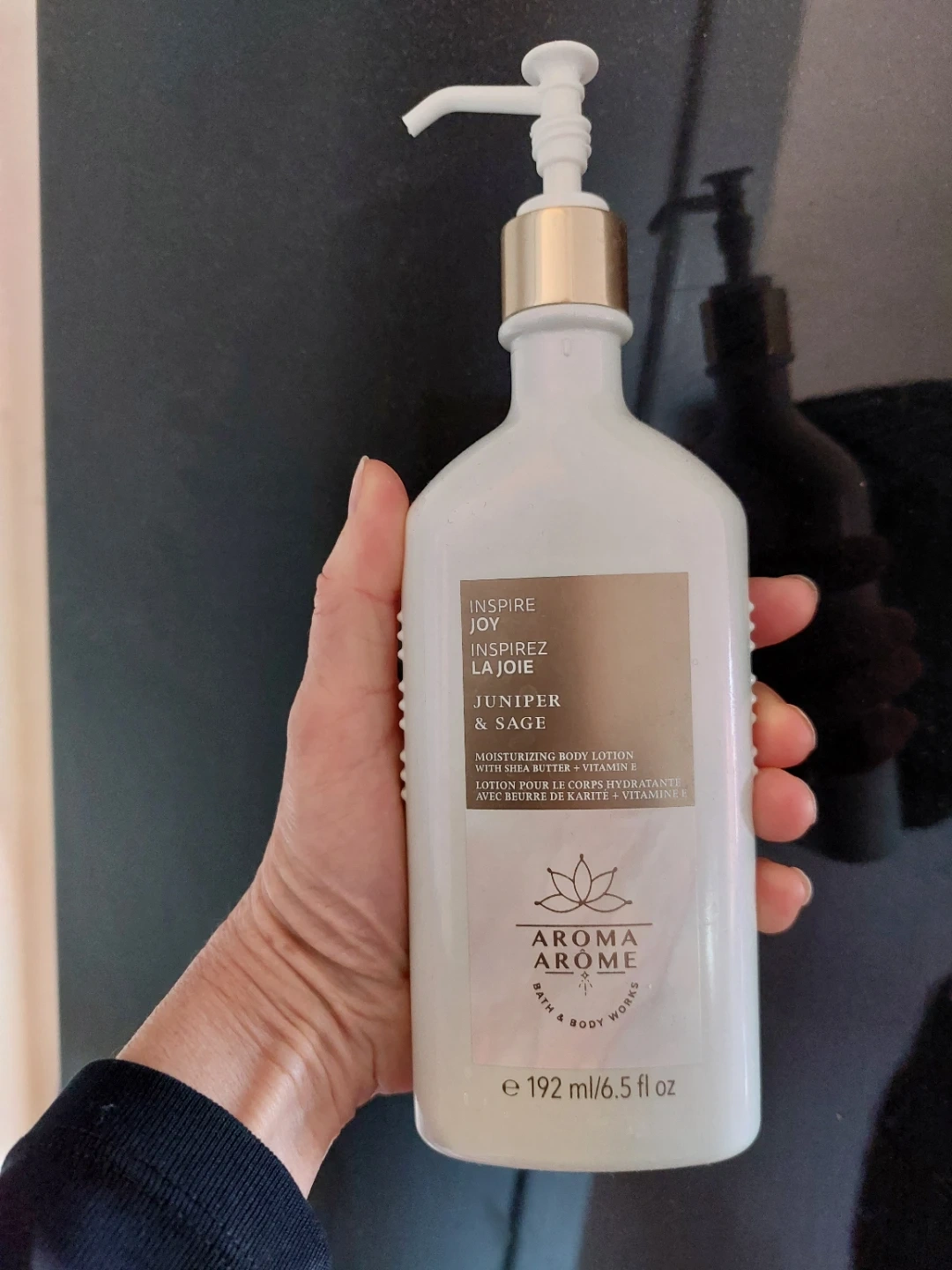 This Bath & Body Works moisturizing body lotion comes in a 6.5 fl oz pump bottle. It's formulated with Vitamin E and Aloe. A blend of Juniper and Sage creates a refreshing aroma. Amazing quality lotion, tried once, it smells too sweet for my taste.