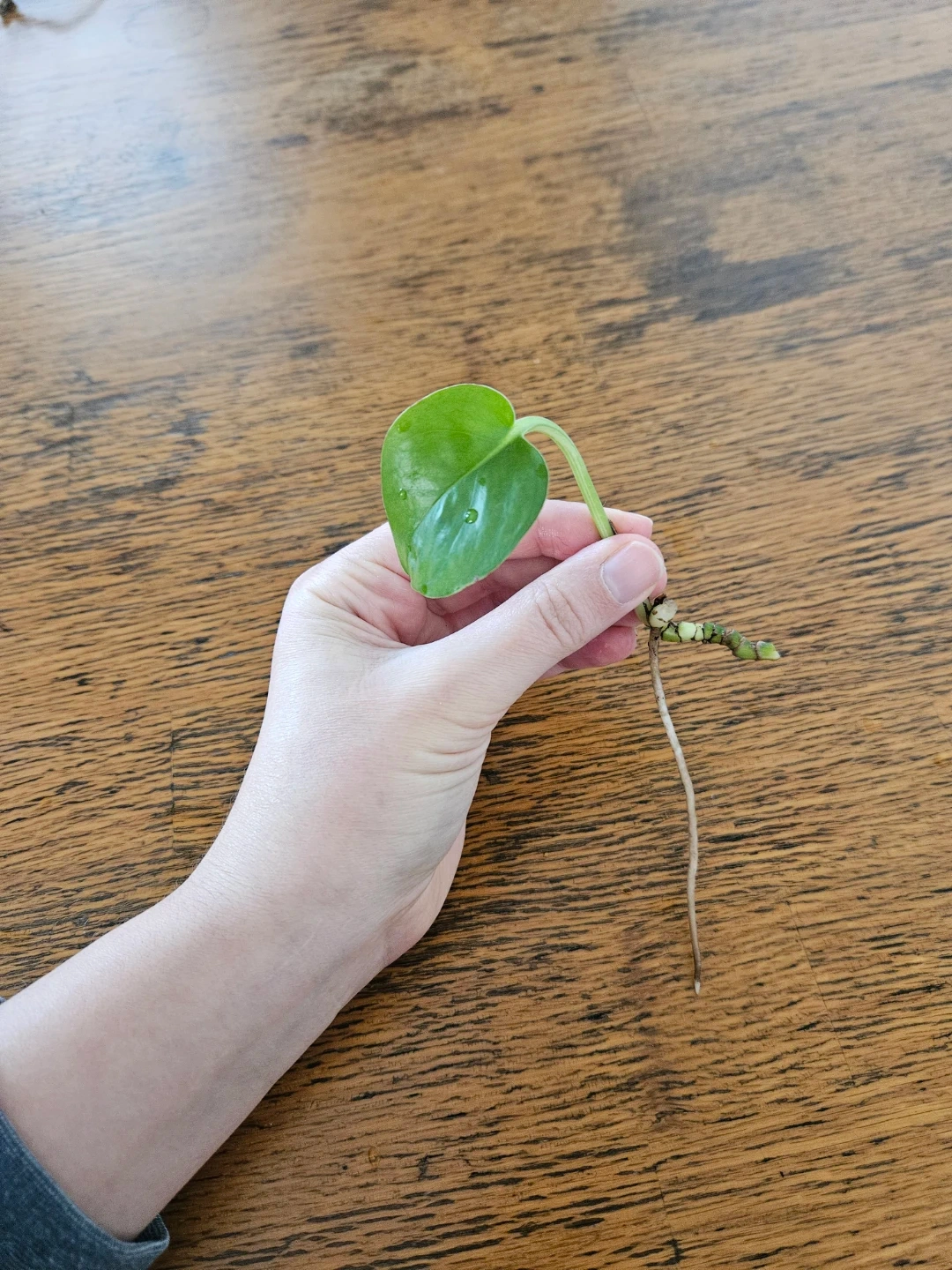 Healthy Pothos cutting with established roots and one active leaf. Ready to be potted and grown into a new plant. It's suitable for starting your own indoor jungle or expanding your plant collection.