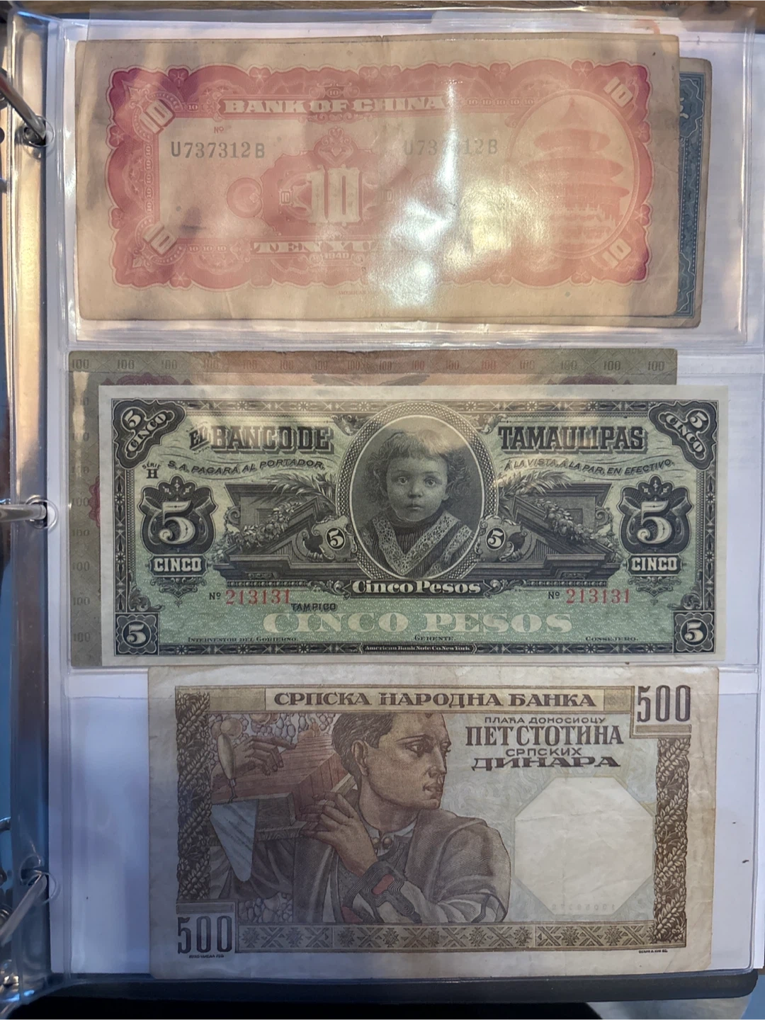 Mixed lot of vintage world banknotes from an inherited collection. Good starter set for collectors, world currency hobbyists, or resellers.