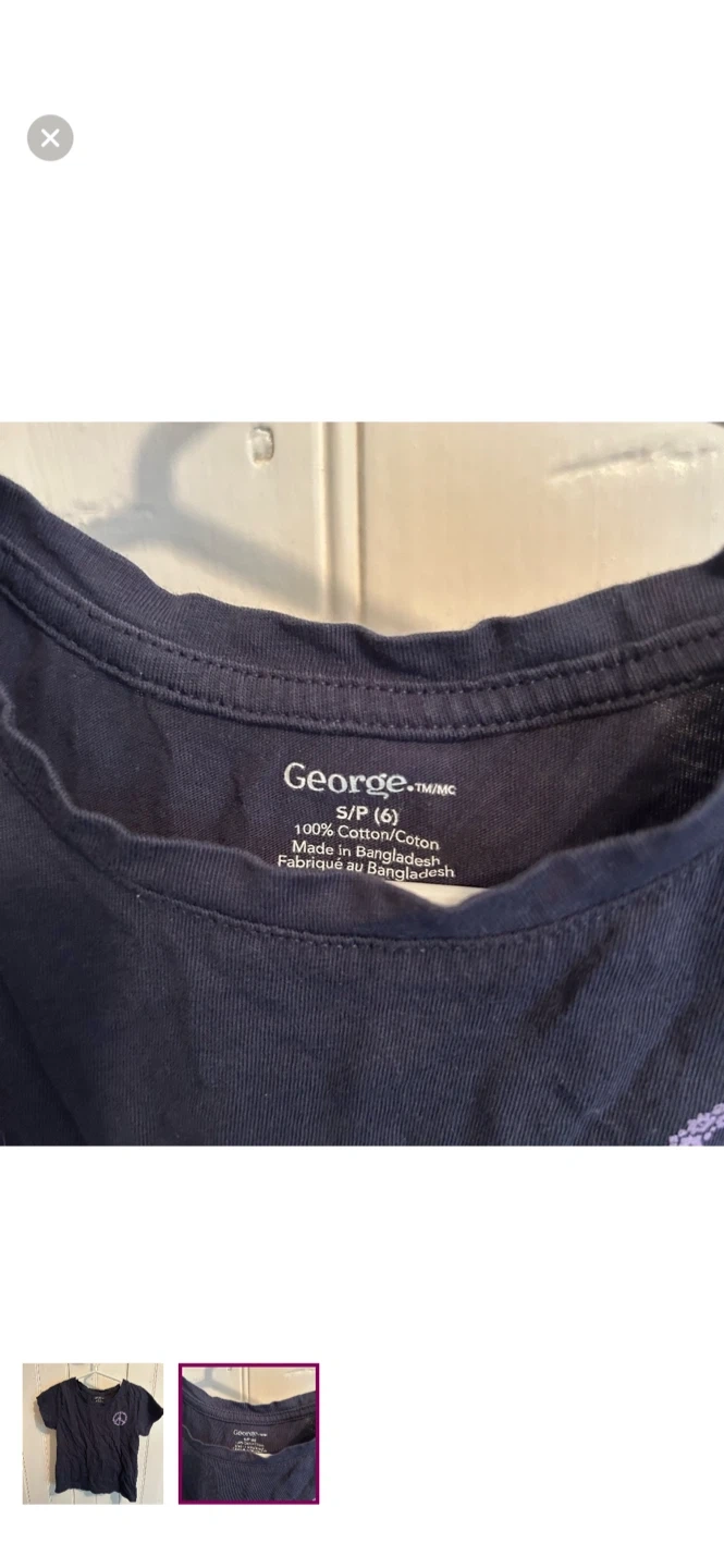 George brand. Short sleeve T-shirt. Navy with purple peace sign. Size youth 6. Brand new condition