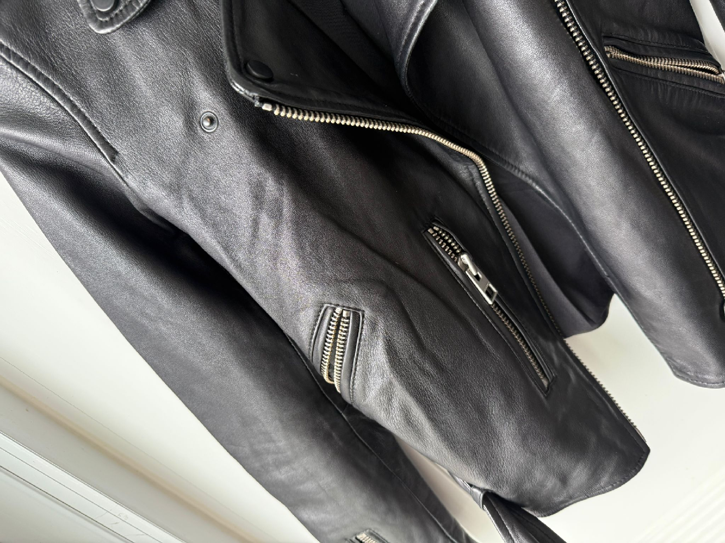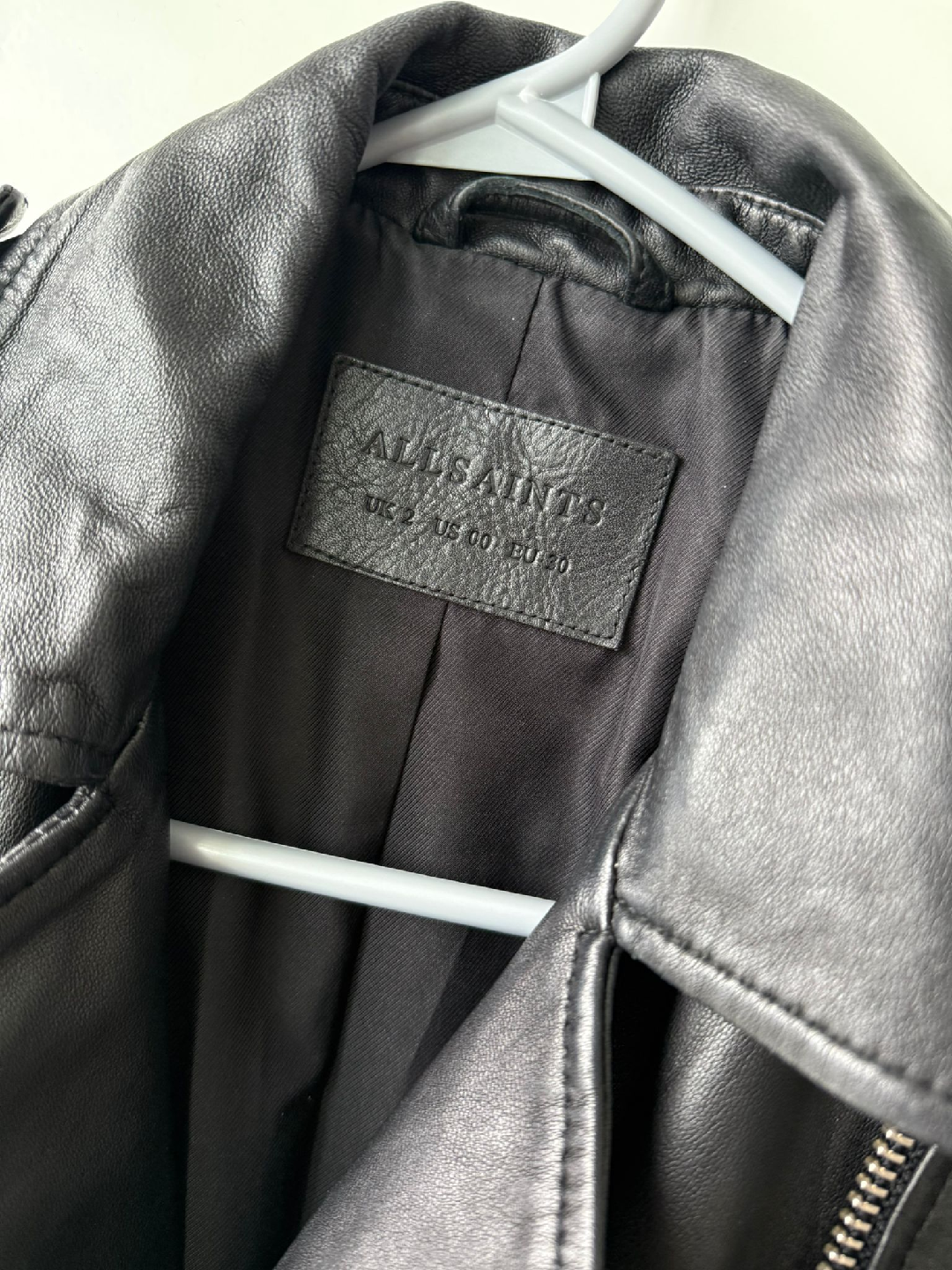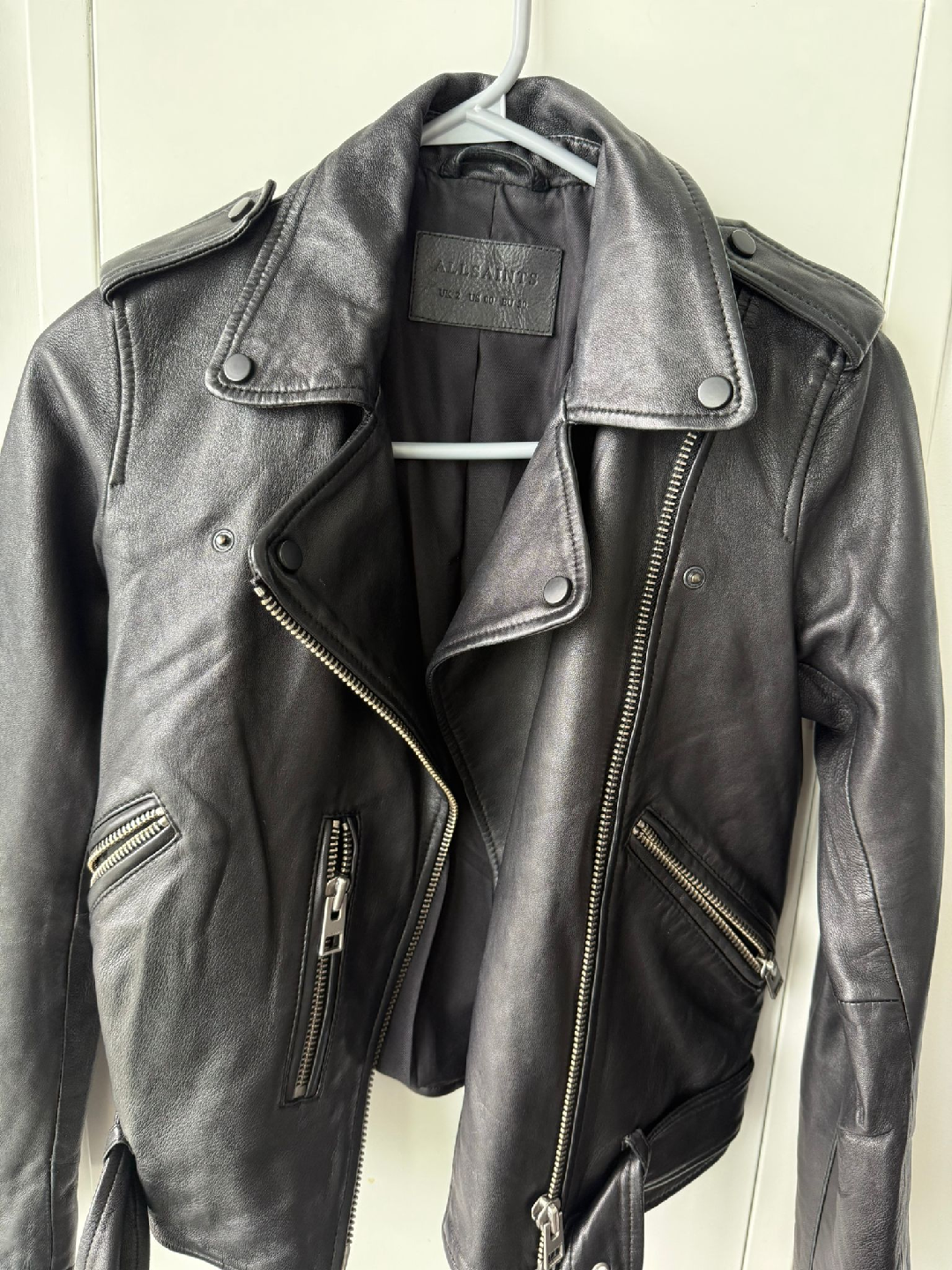 Selling a brand new AllSaints leather biker jacket. It's a size US 00, UK 2, EU 30. This stylish black jacket is made from high-quality leather and is in great condition. Perfect for adding a bit of edge to any outfit!