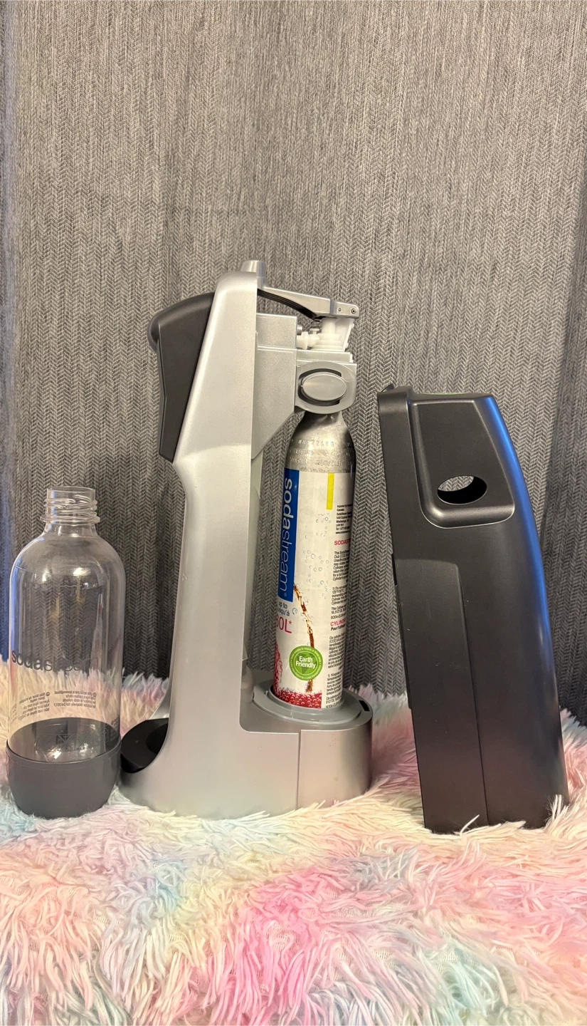 Make your own sparkling water at home with this SodaStream Fizzi. It includes the machine, a reusable bottle, and a CO2 cylinder. Easy to use and makes refreshing fizzy drinks in seconds!