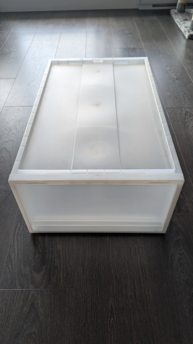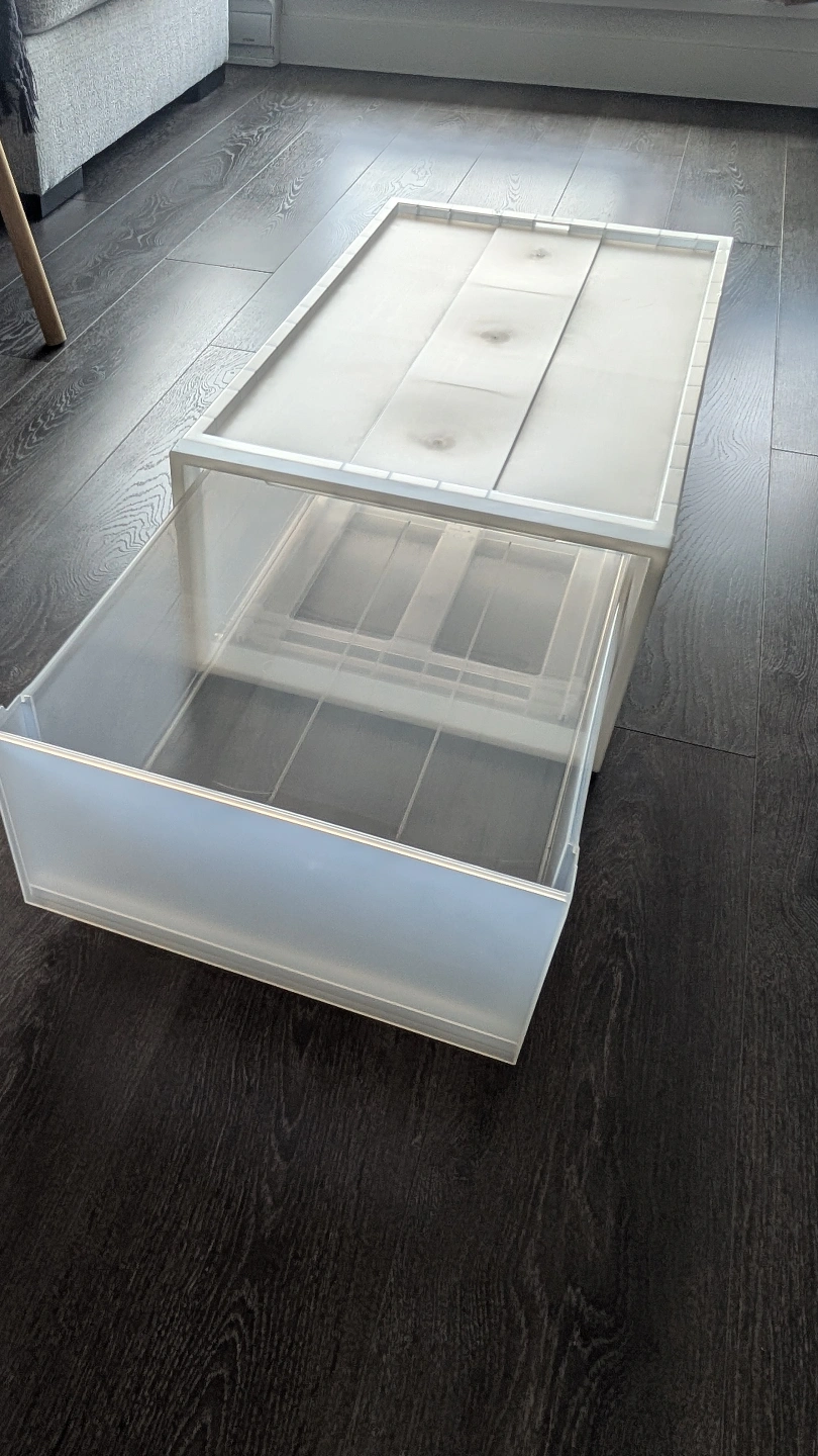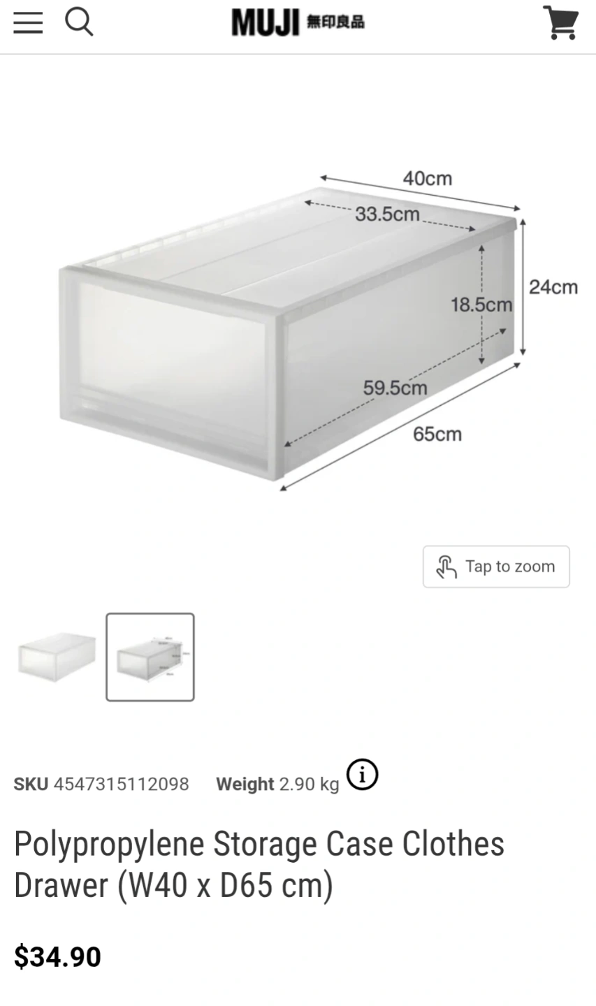 2 MUJI Polypropylene storage drawers. Good for organizing clothes or other items. Would go perfectly under bed.