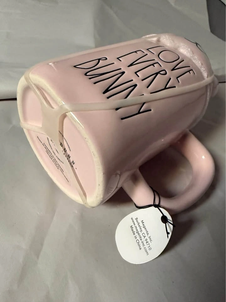 RAE DUNN Mug ~ NEW! Great gift idea this holiday 🐰 Dishwasher safe - may get hot in microwave. LOVE EVERY BUNNY ~ pink bunny topper. Porch pick-up in Oshawa (Rossland & Wilson). Items are only held with payment. Quick pick-up preferred (same or next day). Listing up = still available! EMT preferred. Cash accepted. Friendly & highly rated seller. Browse my other listings for more great finds.