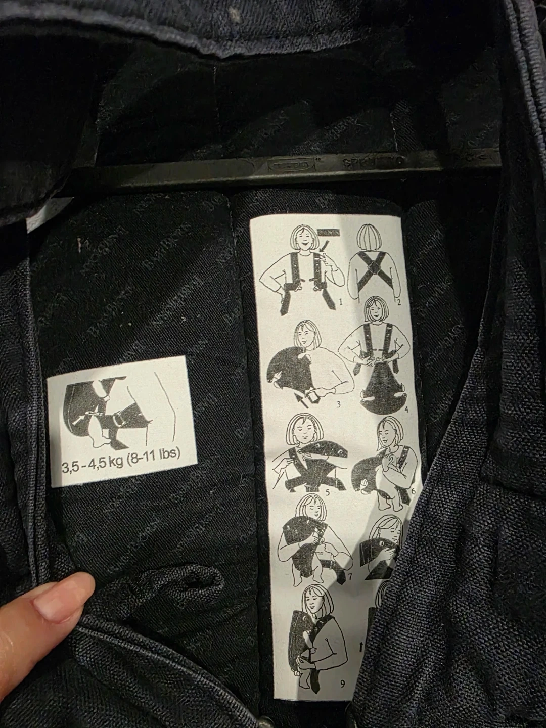 BabyBjörn baby carrier in Blue. Designed for babies from 3.5 kg to 11 kg (8 lbs to 25 lbs). Adjustable straps for a comfortable fit. Used for infants 53-60 cm (21-23.5"), 60-66 cm (23.5-26"), and over 66 cm (26"). Great for hands-free carrying!
